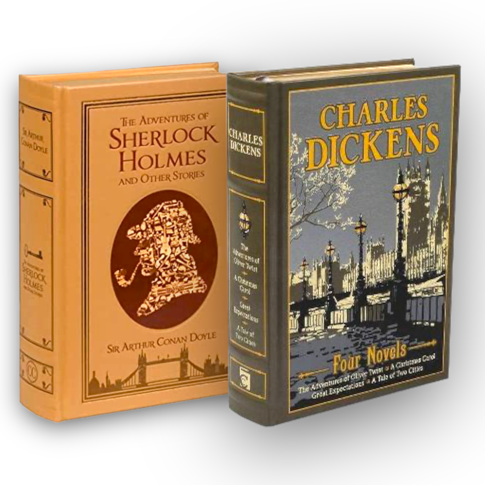 CHARLES DICKENS 4 novels: Four of Charles Dickens's most enduring and popular works in one volume. Oliver Twist. Pip. The ghosts of Christmas past, present, and future. The characters of Charles Dickens live on in our imaginations long after we've read his renowned works of social commentary and vivid storytelling. Although these novels were written more than a hundred years ago, no home library today would be complete without them. This Canterbury Classics edition collects some of Dickens's most famous and beloved works-- The Adventures of Oliver Twist , A Christmas Carol , A Tale of Two Cities , and Great Expectations --in an elegant, leather-bound, keepsake edition. For those who've never read Dickens, it's the perfect opportunity to experience his unique and compelling writing. And for those who are already Dickens devotees, an introduction by a renowned scholar will provide additional context and food for thought. About the Author Born on February 7, 1812, Charles Dickens is one of the most popular literary authors of all time. After a very tumultuous childhood, Dickens finally succeeded in getting his first story in a London periodical. As the number of his published works increased, so did his fame. Although he died in 1870, Dickens works are some of the most famous written works in the English language. Ernest Hilbert received his doctorate in English Language and Literature from Oxford University in 2000. He has served as editor for the Oxford Quarterly , Random House's magazine Bold Type , and the Contemporary Poetry Review . His writing has appeared in American Scholar , The New Republic , The New Criterion , London Magazine , Yale Review , and many other publications. He is an antiquarian bookseller with the firm Bauman Rare Books, where he has had the pleasure of placing many Charles Dickens first editions of into private and public collections. ADVENTURES OF SHERLOCK HOLMES AND OTHER STORIES: There is one literary detective who stands above all others, whose powers of deduction are known the world over, whose influence can still be felt in today's most modern whodunits. Who is it, you ask? Why, it's elementary! Sherlock Holmes, the famous gumshoe of 221B Baker Street. And Sir Arthur Conan Doyle--the man who made him famous in such tales as "The Hound of the Baskervilles" and "A Study in Scarlet"--changed the world of mysteries, inspiring legions of devoted fans. Whether you're a devotee or you've yet to be awed by Holmes's powers of deduction, you'll love this Canterbury Classics edition of Sir Arthur Conan Doyle's famous works, including "The Adventures of Sherlock Holmes," "The Sign of Four," "The Valley of Fear," "The Memoirs of Sherlock Holmes," "The Return of Sherlock Holmes," and "The Casebook of Sherlock Holmes." The perfect book to complete any bookshelf, "The Adventures of Sherlock Holmes and Other Stories" features an eye-catching leather-bound cover with gold foil stamping, as well as fine ivory paper with gilded edges. You'll be spellbound by Conan Doyle's descriptive prose, and then delight in displaying this beautiful book in your home. No home library is complete without the classics! The Adventures of Sherlock Holmes and Other Stories brings together the essential works from Arthur Conan Doyle in an elegant, leather-bound, omnibus edition--a keepsake to be read and treasured. There is one literary detective who stands above all others, whose powers of deduction are known the world over, whose influence can still be felt in today's most modern whodunits. Who is it, you ask? Why, it's elementary! Sherlock Holmes, the famous gumshoe of 221B Baker Street. And Sir Arthur Conan Doyle--the man who made him famous in such tales as The Hound of the Baskervilles and A Study in Scarlet --changed the world of mysteries, inspiring legions of devoted fans. Whether you're a devotee or you've yet to be awed by Holmes's powers of deduction, you'll love this Canterbury Classics edition of Sir Arthur Conan Doyle's famous works, including The Adventures of Sherlock Holmes , The Sign of Four , The Valley of Fear , The Memoirs of Sherlock Holmes , The Return of Sherlock Holmes , and The Casebook of Sherlock Holmes . The perfect book to complete any bookshelf, The Adventures of Sherlock Holmes and Other Stories features an eye-catching leather-bound cover with gold foil stamping, as well as fine ivory paper with gilded edges. You'll be spellbound by Conan Doyle's descriptive prose, and then delight in displaying this beautiful book in your home. A classic keepsake for fans of detective novels, as well as all great literature, The Adventures of Sherlock Holmes and Other Stories is the perfect addition to any library.