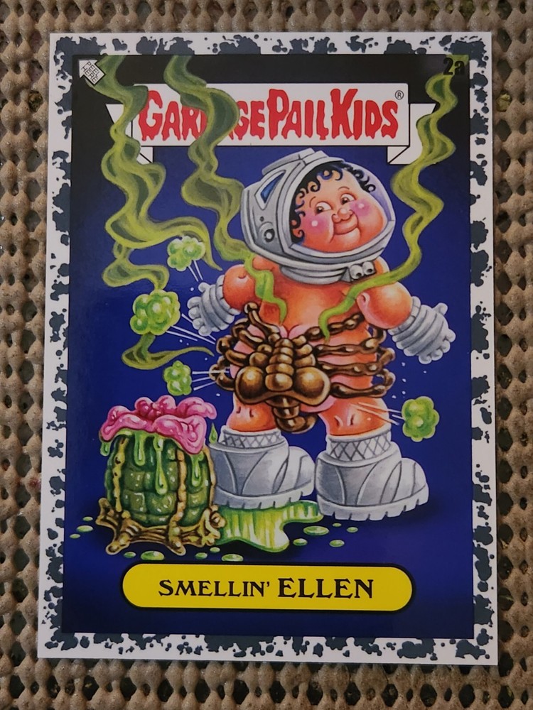 ONE (1) SINGLE CARD: ***The card is SHORT PRINT special insert chase card for the MOONROCK GREY BORDER PARALLEL SET *** >>> ONLY 199 PRINTED TOTAL <<< - SMELLIN' ELLEN (#2a) 2023 INTERGOOLACTIC MAYHEM SERIES SP SHORT PRINT SPECIAL INSERT PARALLEL CHASE CARD SCI-FI TV MOVIE PARODY ARTWORK TOPPS GPK GARBAGE PAIL KIDS PARODY ART UNIQUE RARE SUBSET HARD TO FIND NON-SPORTS COLLECTIBLE ART CARD GPK ORIGINAL ORIGINAL SERIES Garbage Pail Kids are also known as Les Crados, Sgorbions, Gang do lixo, Basuritas, La Pandilla basura, Garbage Gang, Garbage Pail Kids, Die total Kaputten Kids, and Bukimi Kun.