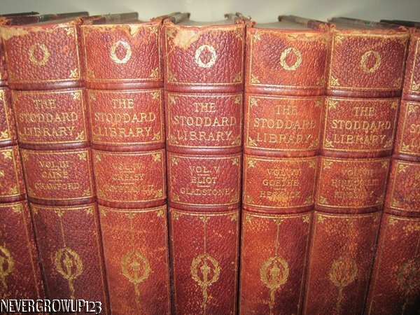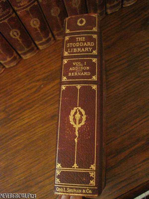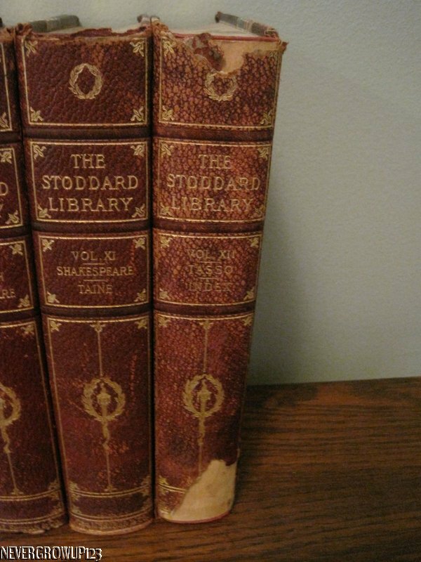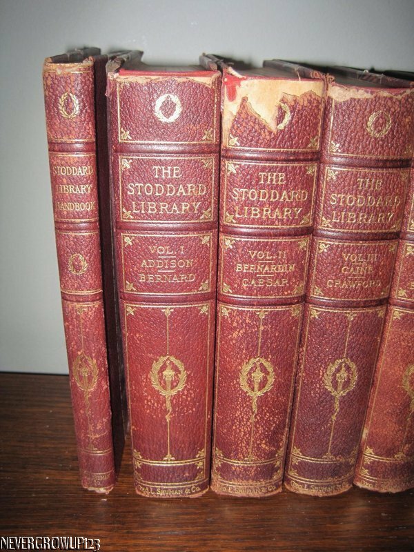 STODDARD LIBRARY OF LITERATURE~RARE 13 VOLUME LEATHER SET~VINTAGE CONDITION~1910 Description [Encyclopedia of Literature] The Stoddard Library, A thorough anthology of literature A Thousand Hours of Entertainment with the World's Great Writers Complete 12 volume set + the rare handbook Therefore complete in 13-volumes Bound in 3/4 leather bindings Top edge of pages are cased in gilding Marbled end papers Ornate gilded spine Silver floral pattern on end-papers Illustrated with full page plates 8 3/4 inches tall Complete 12 volume set + the rare handbook Therefore complete in 13-volumes Geo L. Shuman & Co., Chicago Printed in 1915 Copyright 1910 In VERY GOOD VINTAGE Condition. FINE interior. Hinges are all fully attached. Some general rubs/wear. Some binding tears and deterioration~see photos. Interior pages are clean, crisp, have no writing, but are yellowing with age. These volumes do have that "old book" odor. Complete in 13-volumes Vol 1- Joseph Addison to Bernard of Cluny; Vol 2- Bernardin to Caesar; Vol. 3- Caine to Crawford; Vol. 4- Creasy to Egyptian Literature; Vol. 5- Eliot to Gladstone; Vol. 6- Goethe to Herrick; Vol. 7- Hindoo Literature to Kingsley; Vol. 8- Kipling to McMaster; Vol. 9- Mahaffy to Pliny; Vol. 10- Plutarch to Shakespeare; Vol. 11- Shakespeare cont'd to Taine Vol. 12- Tasso to Zola. Vol. 13 The Rare Stoddard Library Handbook ***I WANT TO POINT OUT VOLUME 1 IN PARTICULAR. THE SIGNS OF AGE ARE HIDDEN, AND IT IS IN THE POOREST CONDITION OF ALL OF THEM. PLEASE REFER TO 2 PHOTOS OF THIS VOLUME. THE BACK COVER IS SOMEWHAT LOOSE, AND THE UPPER EDGE OF THE SPINE IS DETERIORATING. THE CONDITION OF ALL OF THE OTHERS IS SEEN IN THE PHOTOS. WELL CARED FOR, CONSIDERING THEIR AGE SMOKE AND PET FREE HOME **PLEASE ASK ANY QUESTIONS YOU MAY HAVE, AS THIS IS A FINAL SALE *** VERY IMPORTANT *** I HAVE APPX. 3000 ITEMS ON EBAY AT ANY GIVEN TIME. I GET MULTIPLE INQUIRIES EACH DAY REGARDING THE QUESTION, "WILL YOU ACCEPT A LOWER PRICE FOR THIS ITEM?" THE PRICE OF EACH OF MY ITEMS HAS BEEN CAREFULLY RESEARCHED. I ALSO TAKE INTO ACCOUNT MY COST OF THE INDIVIDUAL PIECE, AS WELL AS MY SELLING FEES AND BUSINESS EXPENSES. YOU WILL NOTICE I DO NOT UTILIZE " BEST OFFER " , AND THIS IS THE REASON. THOUGH I WISH I COULD SEND INDIVIDUALIZED RESPONSES TO EACH PERSON WHO ASKS, I CAN NO LONGER AFFORD THE TIME IT TAKES FROM MY DAY. FOR THIS I APOLOGIZE, BUT I DO THANK YOU IN ADVANCE FOR UNDERSTANDING. See my other listings for more great items! Payment Immediate Payment Is Required~PAYPAL ONLY PLEASE Shipping I will ship most items within 48 business hours of cleared payment. This excludes Saturday, Sunday, and holidays. ***CUSTOM BRACELETS~Because these items are made to your specifications after order is placed, they may take up to 7 days to ship. Other Items Feedback Contact Showcase by Seller SourceBook txzj pxzj2835 txzj67