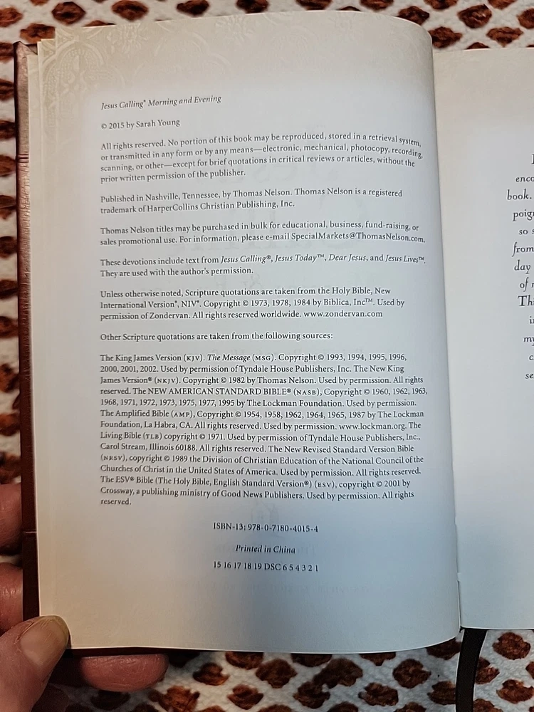 Enhance your spiritual journey with the devotional books "Jesus Calling Morning and Evening" and "Jesus Lives" by Sarah Young. These hardcover books are a part of the Jesus Calling® Ser. and are published by Nelson Incorporated, Thomas. The books are written in English and have a total of 776 pages (Jesus Calling) and 359 pages (Jesus Lives). The books are designed with a faux leather bound (Jesus Calling) and a hard cover (Jesus Lives) they are perfect for those who are looking for reliable and inspiring devotional guides! these books are easy to carry around and read on the go. The books are categorized under "Books & Magazines" and "Books" and are ideal for those who are looking for a deep and meaningful devotional experience. This listing is for 2 books. Please look at all the pictures for the description. These are both used, like new books in very good condition! Please ask any questions or additional pictures before purchase. I can not change the delivery address after purchase, so please make sure your mailing address is correct before purchasing. Thank You!
