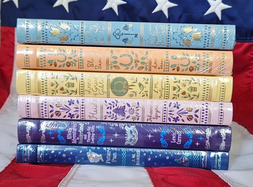 Set of 6 Books! * The Secret Garden * Anne of Green Gables * Black Beauty * Peter Pan * Heidi *Alice in Wonderland Special Bonded Leather Collectible Editions BRAND NEW!! Item Description These books are brand new and sealed , never read or used in any way, perfect condition. Beautiful gilt lettering on the cover and spine Silver gilt page edges Satin ribbon book marker attached Bonded Leather bound hardback boards Black Beauty A handsome horse with a glossy black coat and a pretty white star on his forehead, Black Beauty seems to lead a charmed life. Although his mother warns him that there are 'bad, cruel men' in the world, he begins his life in a happy home, with a friendly groom to look after him and plenty to eat. However, when a change of circumstances means that he is sold, he soon discovers the truth of his mother's words. Anna Sewell's moving story is one of the best-loved animal adventures ever written. Anne of Green Gables Brother and sister Marilla and Matthew Cuthbert look forward to meeting the young orphpan boy whom they hope to give a good life to at their Avonlea farm, Green Gables. When they are accidentally sent Anne Shirley instead, they make the most of the orphanage's mistake, and welcome the imaginative girl with loving arms. Under their care and through the friendships she forges at school, Anne enjoys adventures and experiences that teach her how to be loving and caring in return. Heidi Heidi is the timeless tale of the orphan girl Heidi, who lives with her grandfather in the mountains of Switzerland and who brings cheer and comfort into the lives of all who know her. This edition of Johanna Spyri's classic novel features illustrations in full color by Jessie Wilcox Smith. The Secret Garden On the grounds of Misselthwaite, her Uncle Archibald's estate near the Yorkshire moors, nine-year-old Mary Lennox finds a walled-in garden that has been locked securely for years. With the help of Dickon Sowerby, a young local boy who can charm animals, Mary cultivates the garden, an experiences that both improves her health and raises her spirits. Ultimately, the secret garden proves beneficial not only to to Mary, but to her sickly cousin Colin, whom her estranged uncle has locked away in solitude following the death of his beloved wife, Colin's mother. Nurtured with love and tenderness, the secret garden proves it has the power to heal the heart. Peter Pan Alice in Wonderland Shipping FREE Shipping within the USA will be via USPS Media Mail. International Shipping will be via Ebay Global Shipping Program. All of my books are shipped in sturdy, safe and secure boxes. Return Policy: Returned or exchanged items must be in original condition to qualify for a refund, and must be returned within 30 days from the purchase date. Customers are responsible for all return or exchange shipping charges. Once the returned item is received back to me and I can verify condition, I will process the Refund. Track Page Views With Auctiva's FREE Counter
