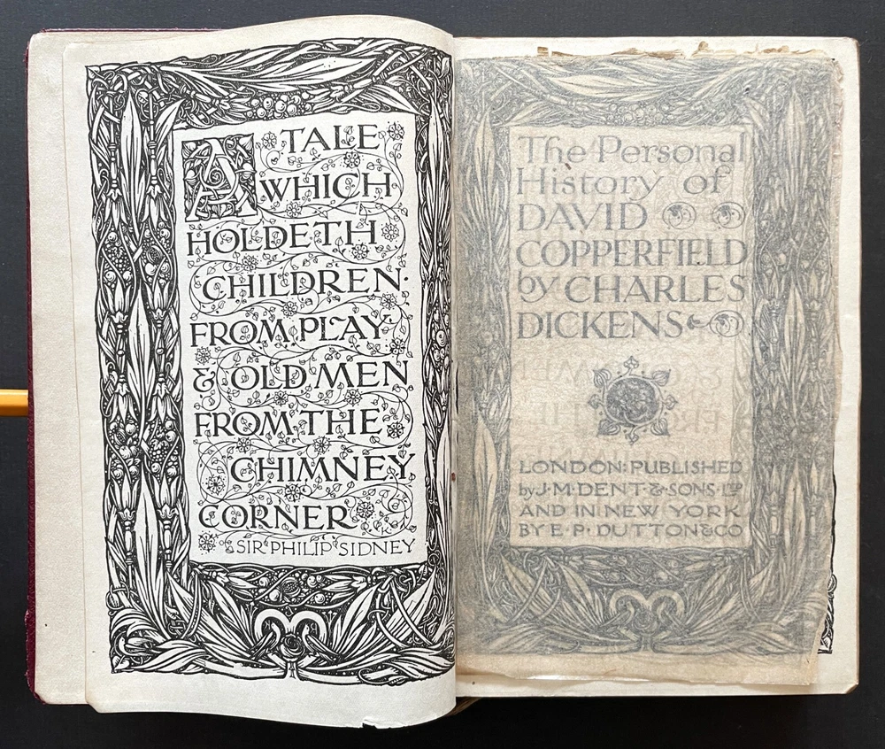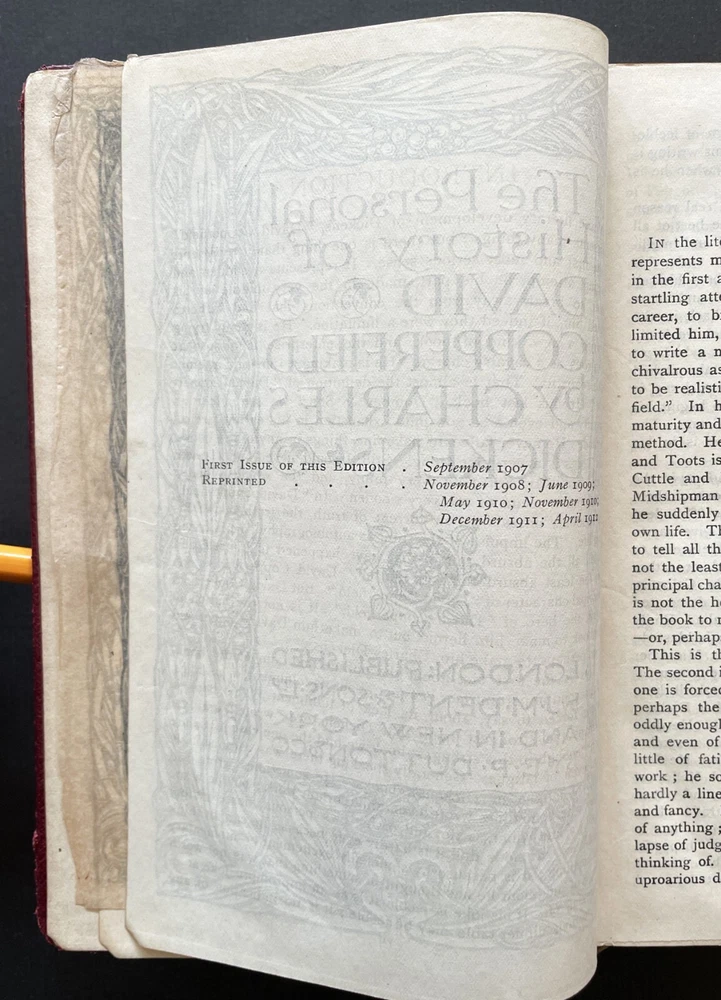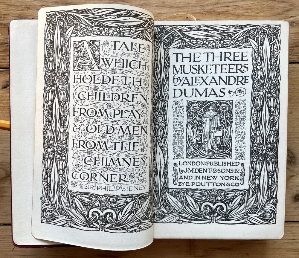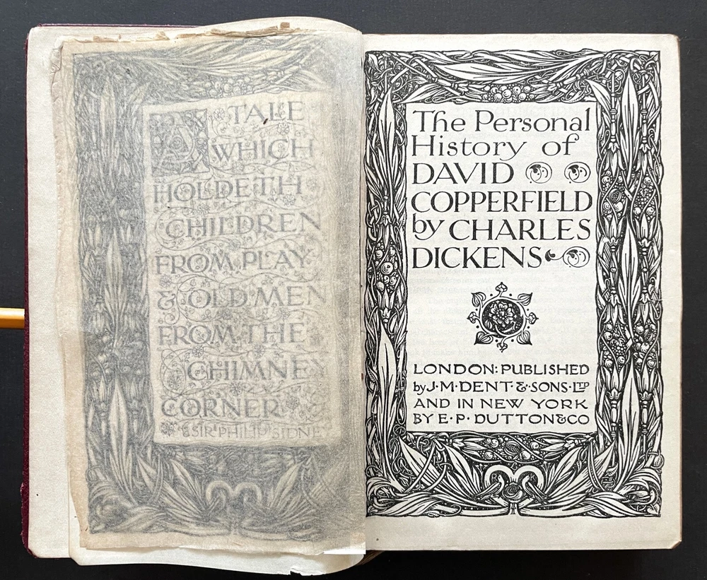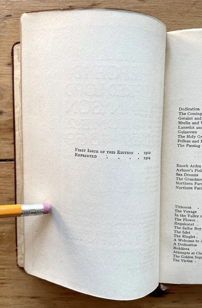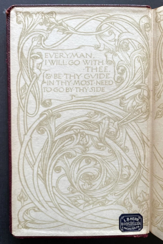 Set of 6 Everyman's Library 1912 - 1913 J. M. Dent & E. P. Dutton Burgundy Leather with decorative gilt spines David Copperfield by Charles Dickens Ghosts and Other Plays by Henrik Ibsen The Autocrat at the Breakfast Table by Oliver Wendel Holmes The Cloister and the Hearth by Charles Reade The Three Musketeers by Alexander Dumas The Poems of Alfred Tennyson Leather rubbed and worn at extremities. Cloister and Hearth front board detached; Three musketeers front board tenuously attached at joint. A couple of books have a prior owner name or bookplate. Books are a mix of 2nd, 3rd and early Everyman editions of these titles. Attractive shelf presence of these early Everyman editions in leather. Worn and Good only