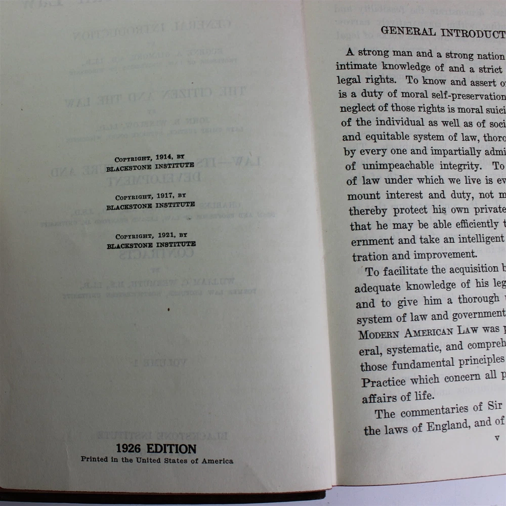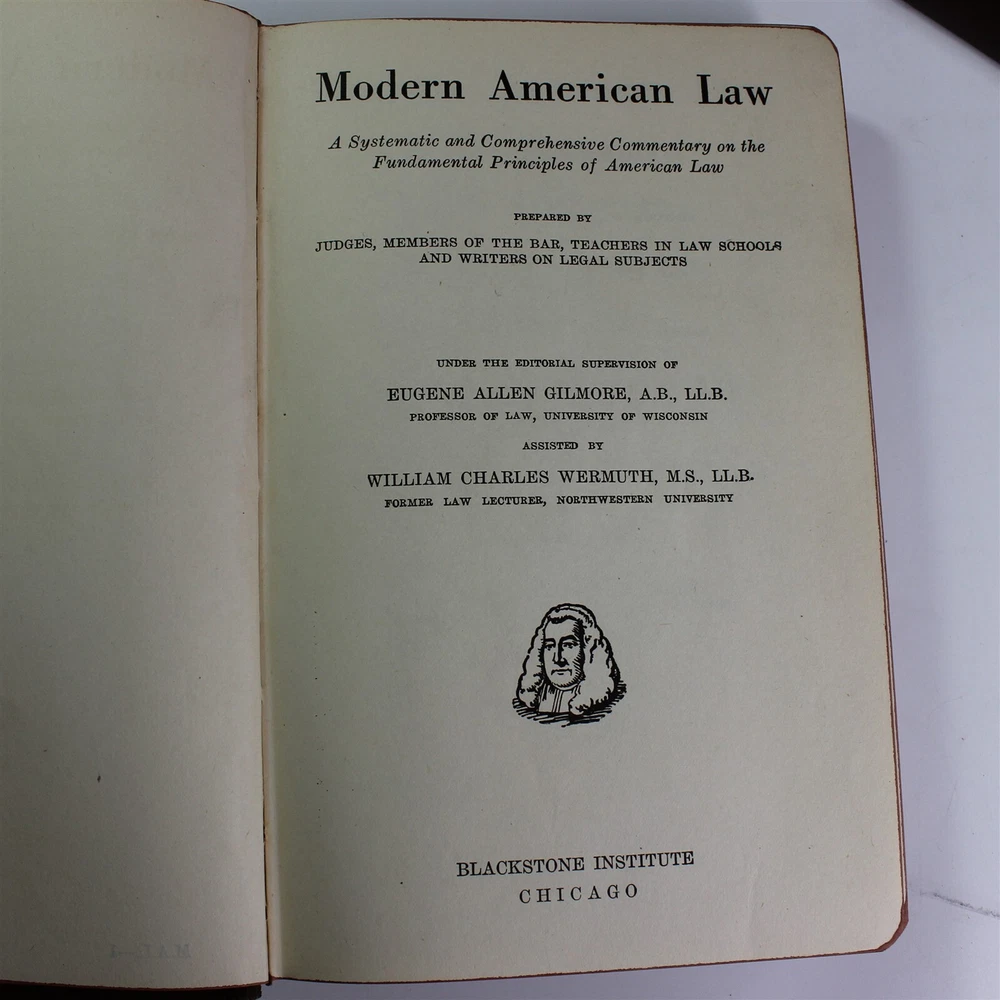 Modern American Law 1926 Edition in 25 Volumes A systematic and Comprehensive Commentary on the Fundamental Principles of American LAw. Prepared by Judges, Members of the Bar, teachers In Law Schools and Writer On Legal Subjects You may be interested in our other eBay listings . Powered by SixBit's eCommerce Solution