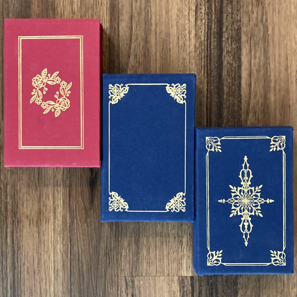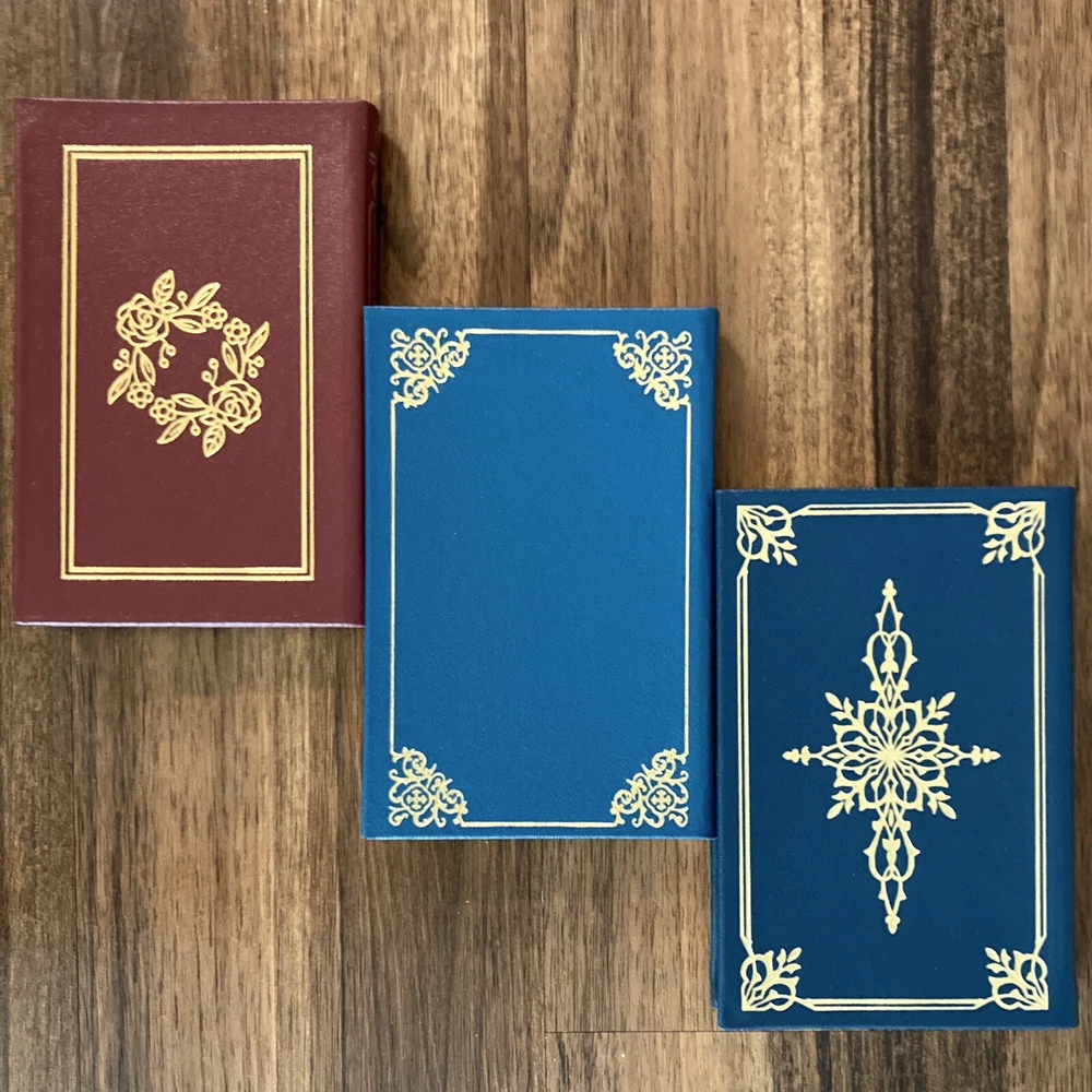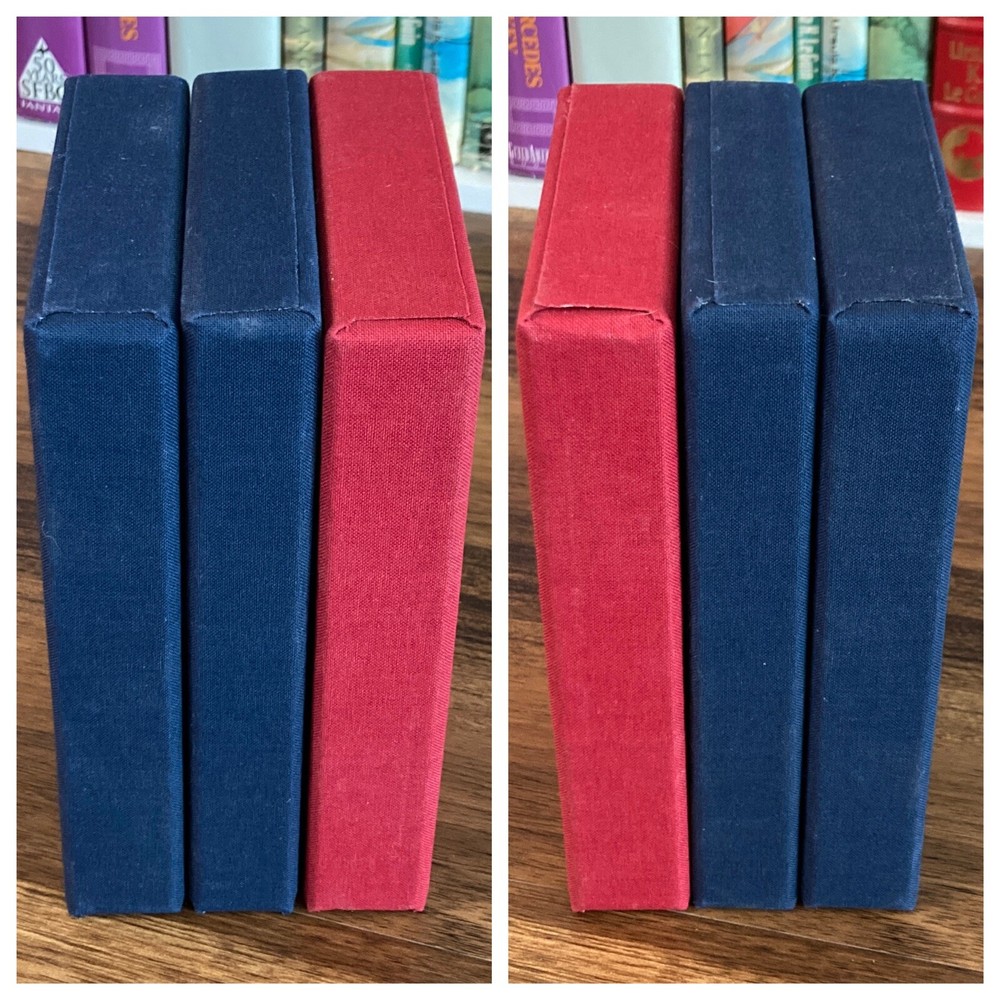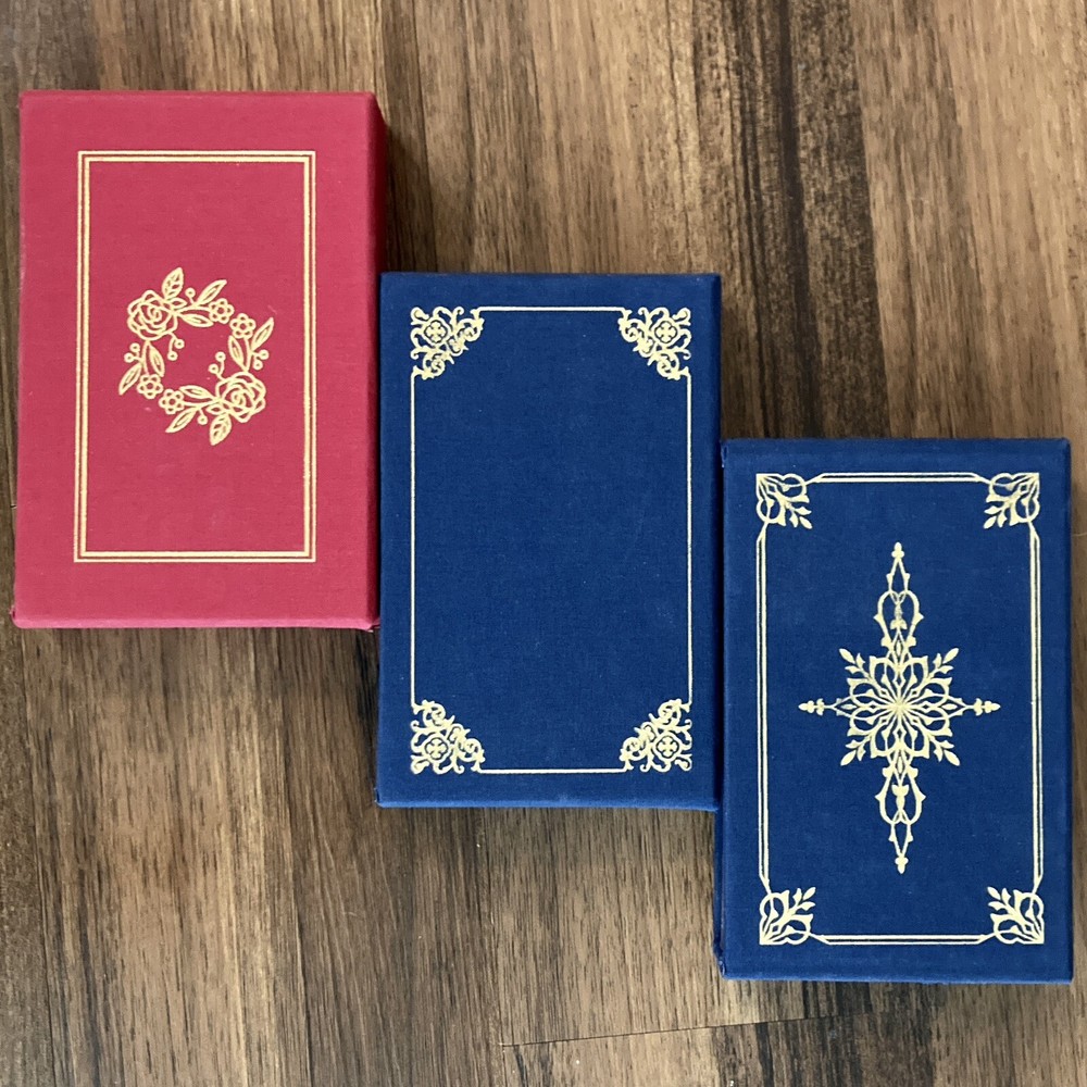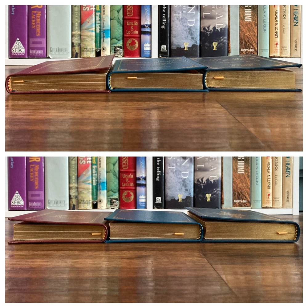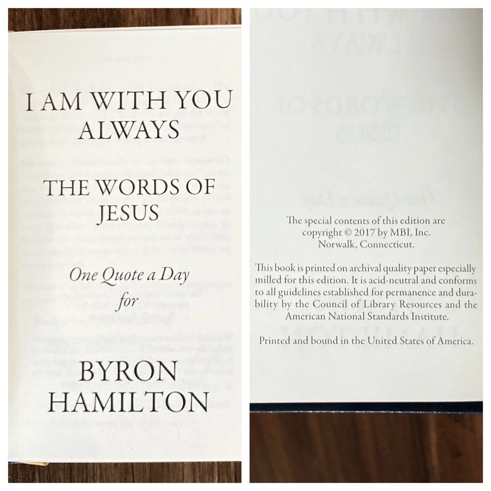 Set of three leather bound Collector’s Edition hardcover Daily Devotional books in cloth-wrapped slipcases (Easton Press, 2015-2021). Set contains: She Believed She Could (2021) / This is the Day the Lord Has Made (2021) / I Am With You Always (2017). All three have personalized gilt lettering to covers and to title pages. A beautiful set with gilt page edges, pictorial covers, decorative endpapers and attached tassel ribbon bookmarks. Mild shelf wear to slipcases. Leather bound covers slightly curved away from text block at fore edge. Binding is firm and spine is straight. All pages clean and unmarked. Possibly unread. See photos for condition. Packaged with care and shipped via USPS Media Mail