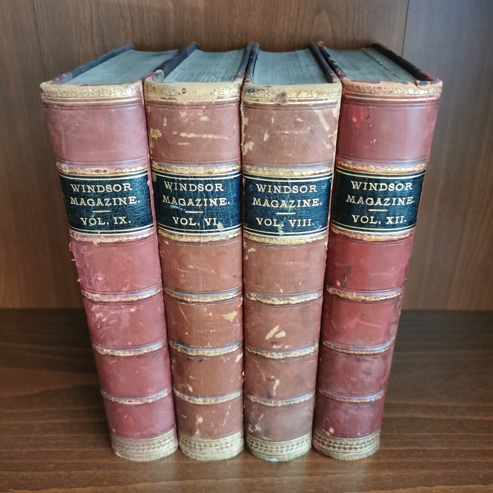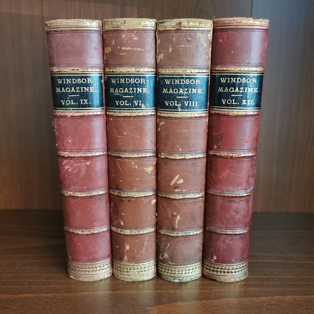 Gorgeous set of 4 books - each book is a collection of the monthly issues of Windsor Magazine from a set period. These volumes are between the late 1890s and early 1900s. Windsor Magazine was an illustrated monthly magazine that self-titled "for men and women". Perfect large book decor, gorgeous rustic rust brown red leather books for shelf decor. Set of 4 Antique Windsor Magazine Illustrated Monthly Leather Bound Books Red Rust Brown Decor Turn of the Century Old Large Books Decor
