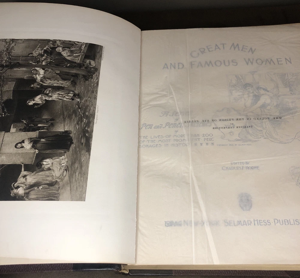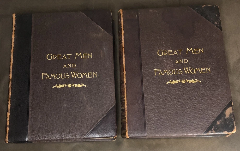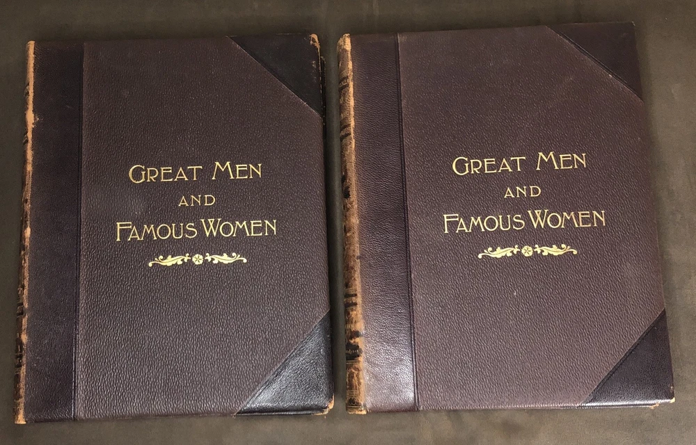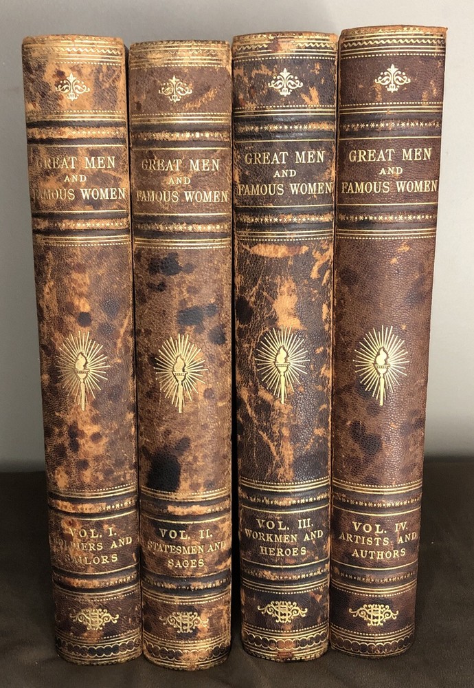 Great Men and Famous Women ~ Set of 4 ~ Leather Hardcover Books ~ Copyright 1894 Volume 1: Soldiers & Sailors Volume 2: Statesmen and Sages Volume 3: Workmen and Heroes Volume 4: Artists and Authors Preowned books ~ show lots of signs of wear, age & use (mostly on the covers), but overall still beautiful old books. See pictures. Fast shipping from a reliable seller! Pictures are included in the description, please look them over and ask any questions you may have. Colors may vary in pictures. Preowned items may have some signs of previous wear or usage.