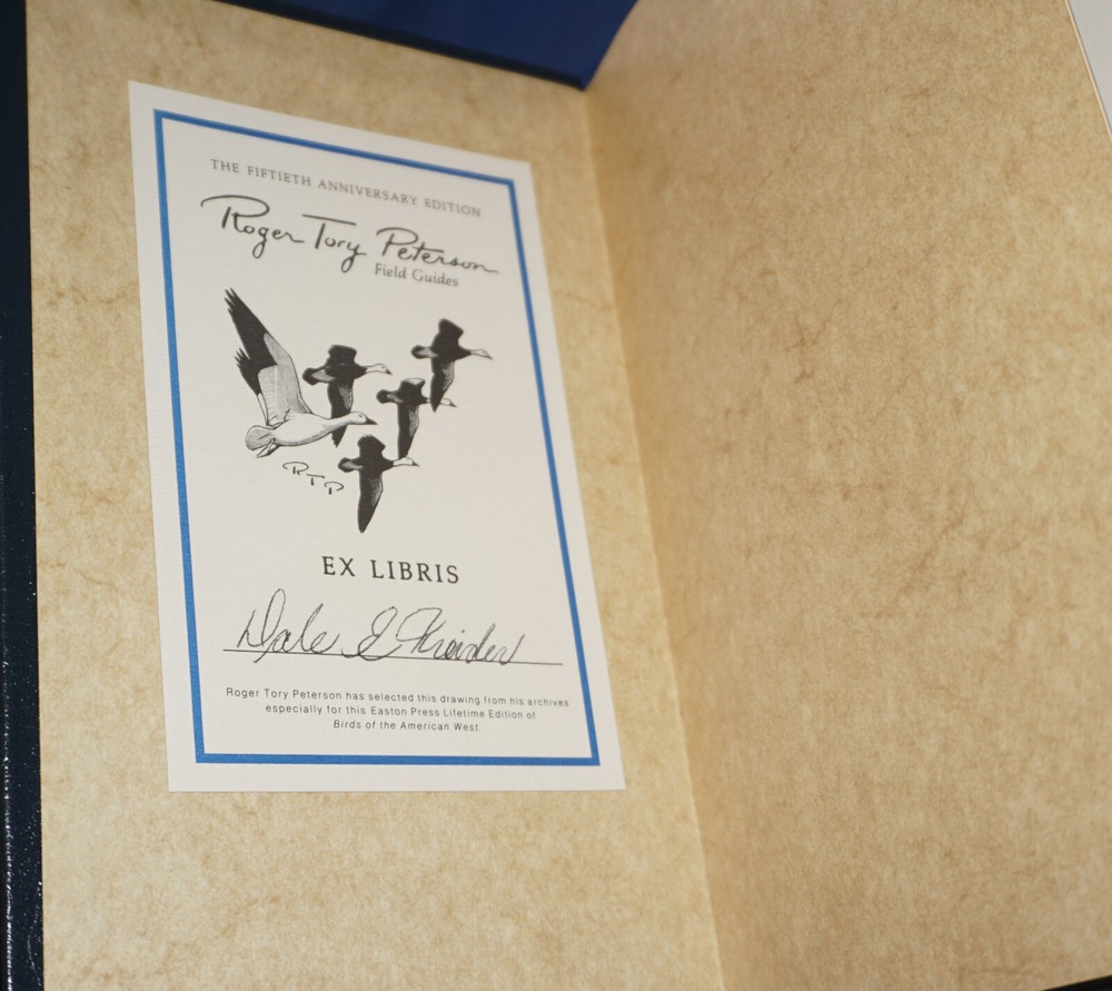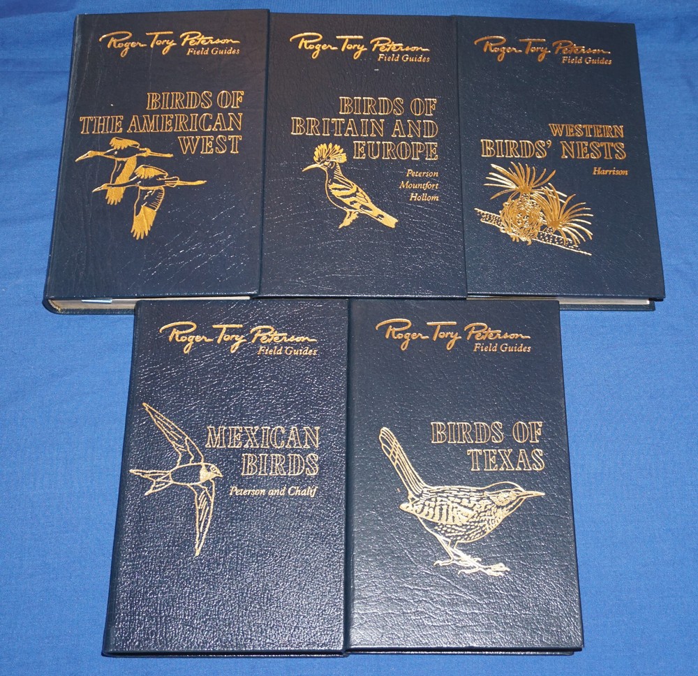 Set of 5 Excellent Easton Press ~ Roger Tory Peterson Field Guides ~ Birds Wonderful condition. Includes: Birds of the American West Western Birds' Nests Birds of Britain and Europe Birds of Texas Mexican Birds Birds of the American West has the bookplate signed and affixed inside the front cover. The other 4 have the bookplate, but it's blank and loose.