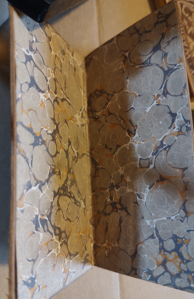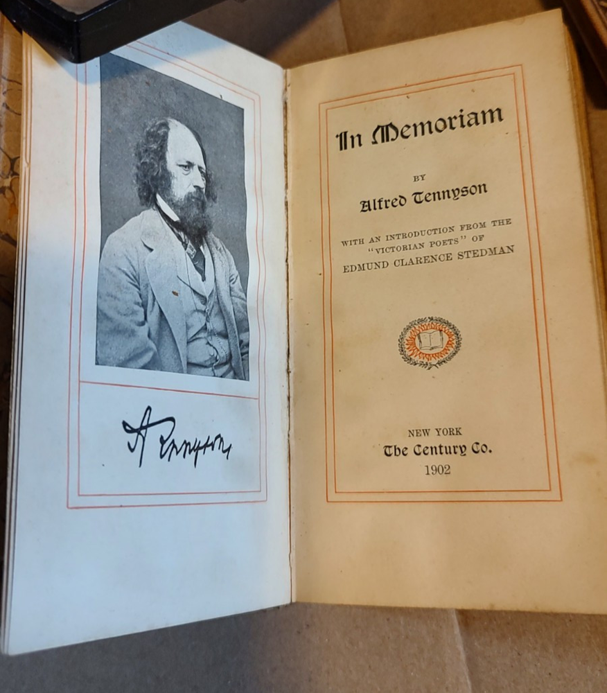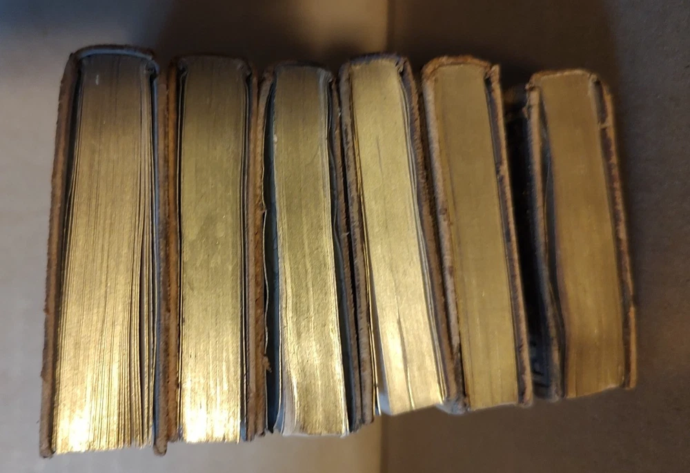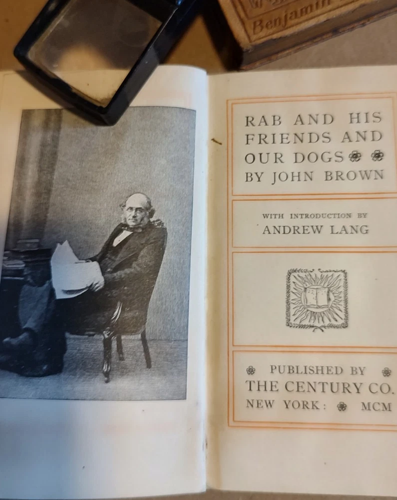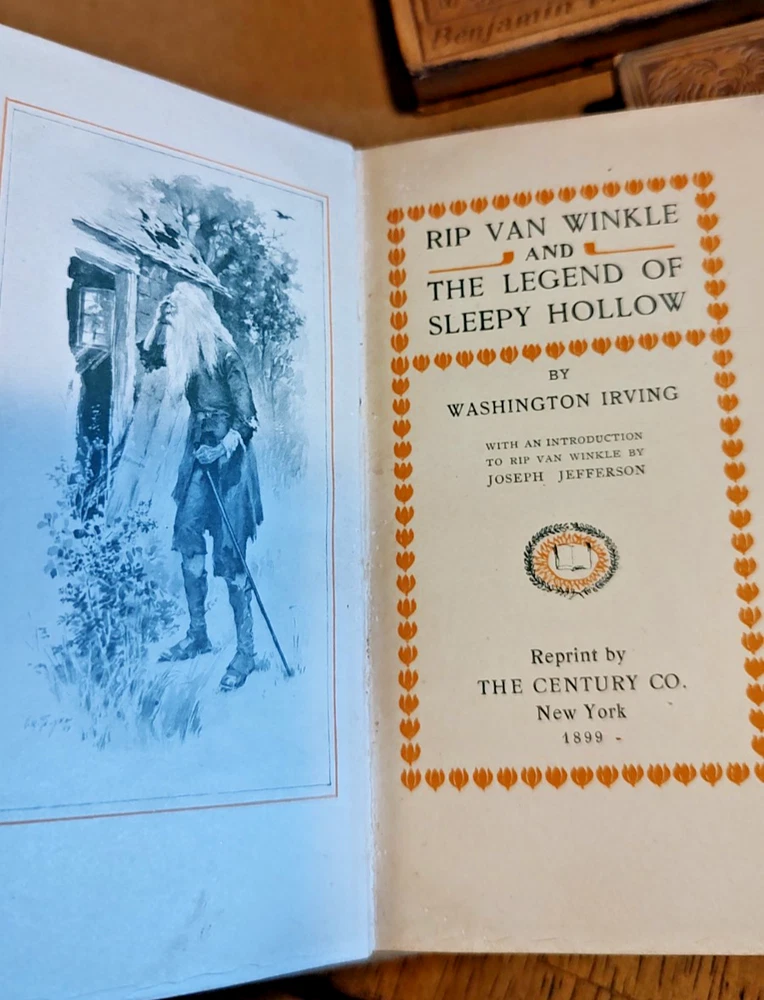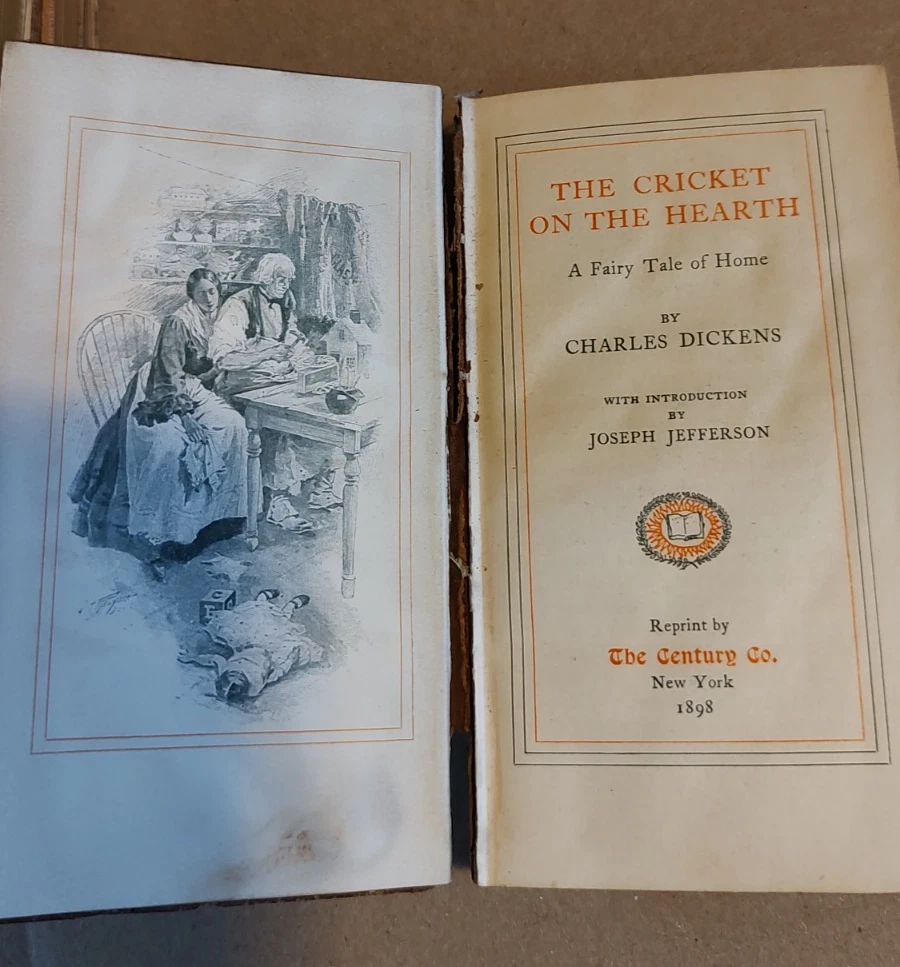 More from my inherited book collection: The Century Company, printed by De Vinne Press, six reprints of classic literature bound in tooled leather with gold gilt page edges. All with varying subjects on the covers and spines. Dates range from 1898 to 1902. Set cosists of: In Memoriam, Tennyson Sleepy Hollow, Rip Van Winkle, Washington Irving The Meditations of Marcus Aurelius Poor Richard's Almanack, Benjamin Franklin Rab and his Friends, Our Dogs, John Brown The Cricket on the Hearth, Charles Dickens Very fancy tooled covers and spines. The books do show some signs of moisture damage and did have some black smudges. The smudges wiped off, for the most part. The Cricket book has the most damage, as seen. See all photos and ask any questions. Each book is 5" by 3". Offers considered. Thank you for looking!
