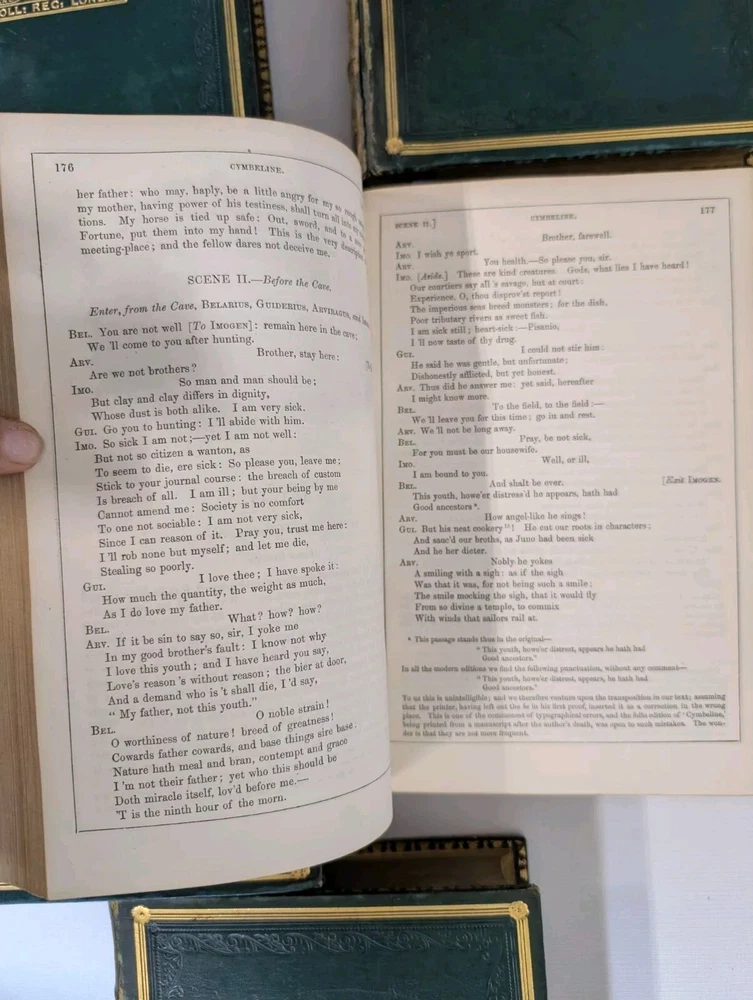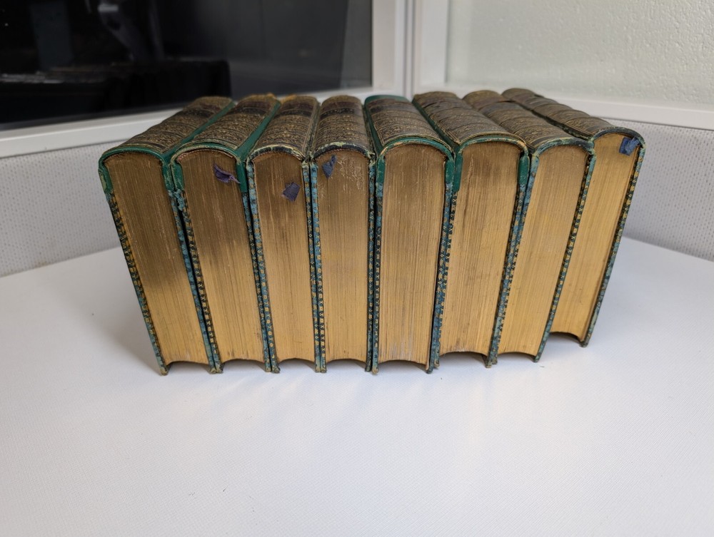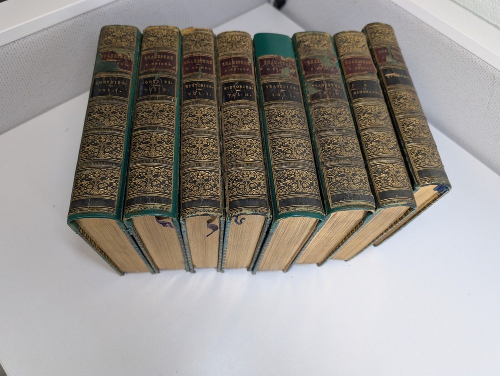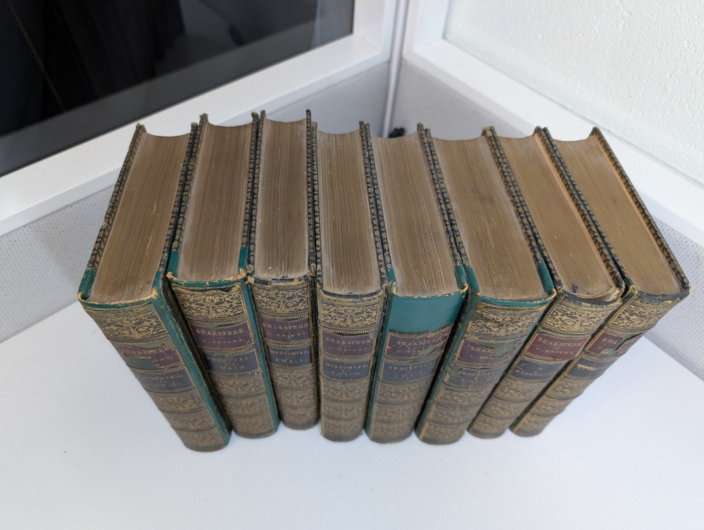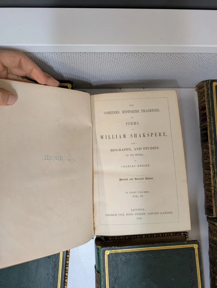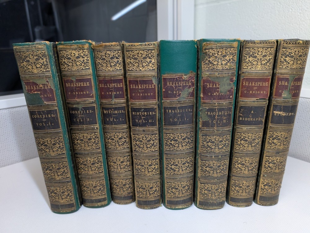 This Shakespeare 8 Volume Leather Bound Set Pictorial Edition London Charles Knight is a collector's gem. The set features the works of the legendary playwright William Shakespeare, published by George Cox, King Street, Covent Garden in 1853. The beautiful green leather binding and special gold attributes make it a valuable addition to any collection. The set includes eight volumes, each filled with the richness of Shakespeare's plays and biography. The language of the text is English and the place of publication is London. The set falls under the categories of Antiquarian & Collectible and Books & Magazines. This set is perfect for theater enthusiasts and Shakespearean collectors. Please see up close the condition of all books. All pages are intact. Biography book spine is slightly detaching. The cover spines have a slight chip to wear to it. All pages are readable. 8 Books: -Comedies vol. I -Comedies vol. II -Tragedies vol. I -Tragedies vol. II -Histories vol. I -Histories vol. II -Studies -Biography PLEASE READ ENTIRE AD IN ITS ENTIRETY AND LOOK CLOSELY AT ALL PICTURES, WHAT YOU SEE IN ALL THE PHOTOS IS WHAT YOU'LL BE GETTING. IF THERE IS ANY QUESTION OR ADDITIONAL PHOTOS NEEDED PLEASE ASK BEFORE PURCHASING OR PRIOR TO BIDDING. PLEASE!!! CONTACT ME FIRST IF THERE MIGHT BE ANY ISSUES, I AM ALWAYS WILLING TO WORK OUT ANY PROBLEM, DO NOT JUST LEAVE A NEGATIVE FEEDBACK IT DOES NOT DO ANYONE ANY GOOD. I DO MY BEST TO DESCRIBE EVERY ITEM ACCURATELY WITH A DESCRIPTION AND PHOTOS. IF I MAKE A MISTAKE I WILL COVER SHIPPING BACK TO ME AS WELL AS YOUR INITIAL SHIPPING, ONCE THE ITEM HAS BEEN RETURNED TO ME. IF THE MISTAKE IS MUTUAL (I.E. YOU DID NOT READ THE AD CLEARLY OR YOU JUST DID NOT WANT THE ITEM AFTER ALL), I WILL NOT PAY FOR RETURN SHIPPING (FAIR IS FAIR) PAYMENT IS DUE WITHIN 48 HOURS OF AUCTIONS END. We ship UPS unless otherwise stated. If buyer wants more than just a UPS tracking number such as a Signature Confirmation, additional insurances or services or ship through a different company please let us know before payment so we can make sure your item(s) are shipped accordingly or it will be ship by what you selected at checkout. We also can do combine shipping. Any items over $500 will automatically have adult signature added to shipping costs. **Please checkout my other items** BIDDING/PURCHASING: * Please review item description and check pictures for cosmetic condition and additional information. * We will not end auctions early for buy it now offers. * Payments must be received within 3 days. Unpaid cases will be open after the allotted time. Please contact us if additional time is needed. PRODUCT GUARANTEE: * We do our very best to accurately describe our items. Some of our items are used and the history is unknown but we will list any additional info if needed. * Items are ran through a basic testing and pictures uploaded are in their current condition. However, if you have any questions, please contact us right away before bidding. SHIPPING: * We will only ship to confirmed addresses in the US. Please make any changes to your address before paying. We will not change addresses. * Items will be shipped UPS unless over 150 pounds (including packing weight) or otherwise selected or communicated by buyer. * We will combine shipping on multiple items purchased to same address. We can combine shipping cost to same address. Please let us know in advance if you are intending to purchase multiple items so we can combine them and invoice you back one shipping price if you are unable to do so at checkout. * If shipped internationally buyer will be responsible for any additional international shipping cost. * If we posted local pick up only that means you will have to arrange for item to be pick up or shipping and any insurances involved with it. We will not be responsible for shipping or packaging with this item. RETURNS: * There are no returns on items listed as "AS-IS, "FOR PARTS OR REPAIR", or "FOR PARTS NOT WORKING". * Items MUST be returned in the same condition as purchased * We do not accept returns on the following: 1) Sealed packages that have been opened and 2) Any item that has been modified without our prior approval LOCAL PICKUPS: * Local pickup is available for all of our items to avoid shipping cost. Please contact us in advance for more information. * For items that are posted as "LOCAL PICKUP" it will be the buyer responsibility to arrange for the pick up, no exceptions. (For example, item may not have been listed to be able to ship through mail because of shipping costs, risk of possible damage during transportation and/or of it awkward size, shape or weight.) FEEDBACK: * Please let us know (Ebay Messages) if you have any problems before leaving a negative or neutral feedback. We will always do our best to correct problem(s). Our goal is great quality customer service that will bring back repeat customers. THERE IS NO RESERVE!! Check out my other items! Be sure to add me to your favorites list! *** AUCTION DETAILS: *** THERE IS NO RESERVE!! *** PAYMENT MUST BE RECEIVED WITHIN (3) DAYS OF AUCTIONS END OR I WILL RE-LIST THE ITEM AND TAKE ACTION THROUGH EBAY!! PLEASE, SERIOUS BIDDERS ONLY!! SHIPPING INSIDE THE U.S. ONLY TO CONFIRMED ADDRESS ONLY!! NO EXCEPTIONS! NO INTERNATIONAL SHIPPING!! NO EXCEPTIONS!! ** ** IF ANY PROBLEMS ARISE AFTER THE END OF THE AUCTION, PLEASE CONTACT ME HERE, DIRECTLY ON EBAY, NOT VIA E-MAIL! I ALWAYS TRY TO KEEP MY CUSTOMERS HAPPY AND PREFER 5 STAR FEEDBACK IN RETURN! I AM ALSO WILLING TO ANSWER ALL YOUR QUESTIONS BEFORE THE AUCTIONS END WITH AT LEAST (1) DAY NOTICE. GOOD LUCK!! ***