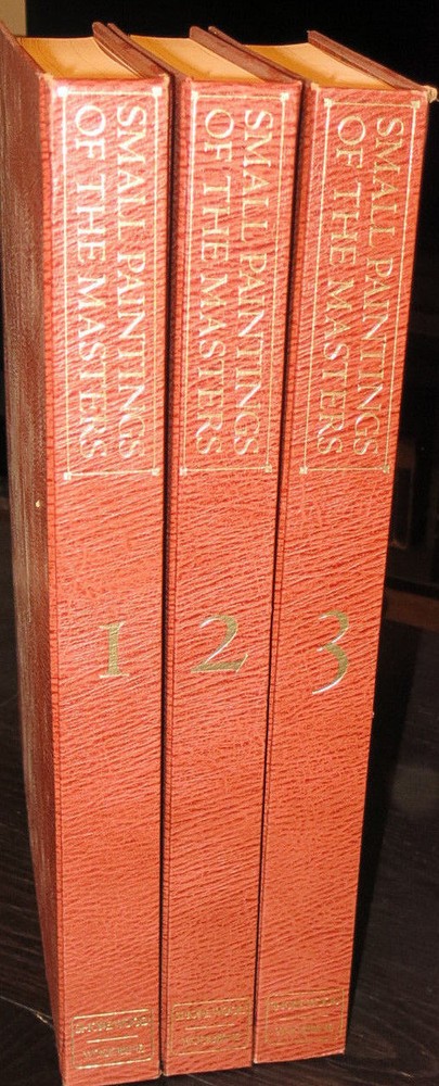 You are bidding Small Paintings of the Masters created by Shoreline Books and published by Woodbine Books in 1980. 3 Folio volumes bound in original leather with spines and front boards stamped in gilt. First and only edition of this beautifully produced set of books, a collection of smaller works by Old Masters, all reproduced to scale with accompanying text. Includes Flemish and Dutch Schools, Flemish and English Schools, Italian School, Northern School and early XIX Century. Published in an edition of 1250 sets, this set is apparently lacking the limitation page, otherwise in as new condition. Very scarce! Please email any questions and thanks for looking!