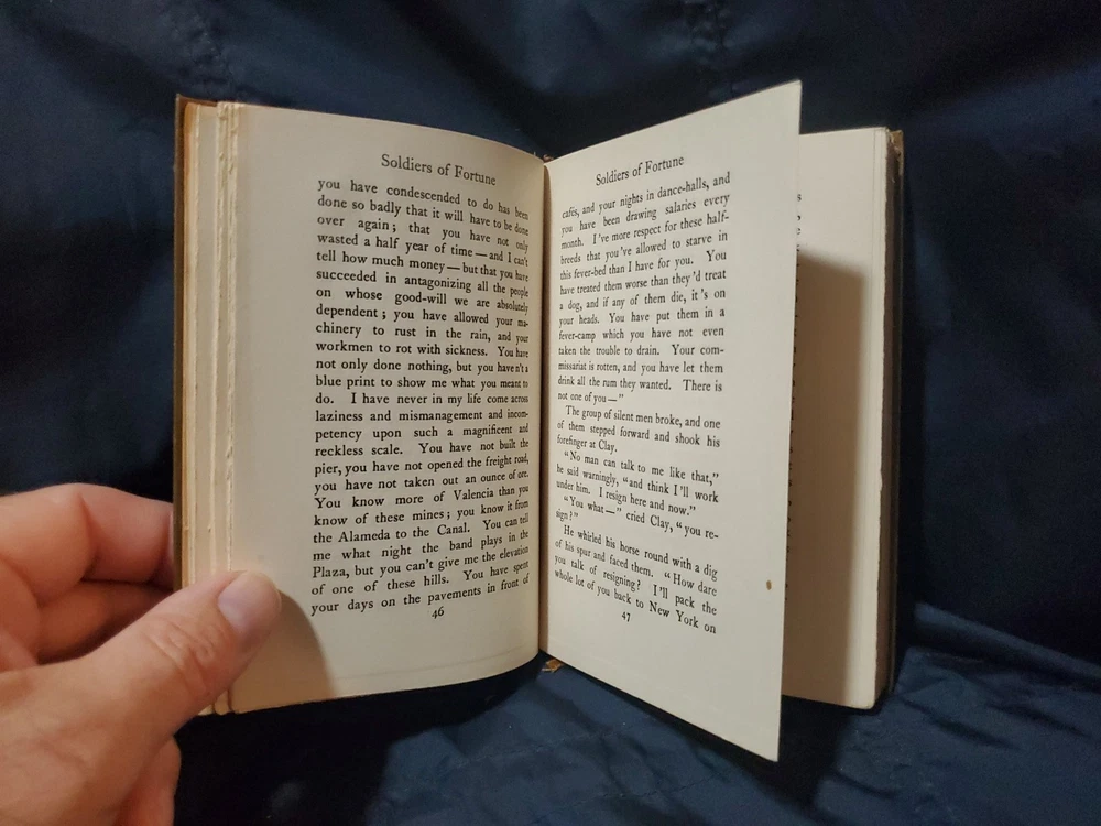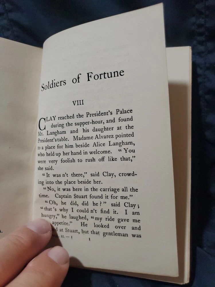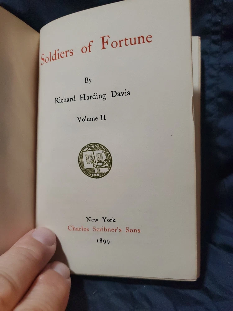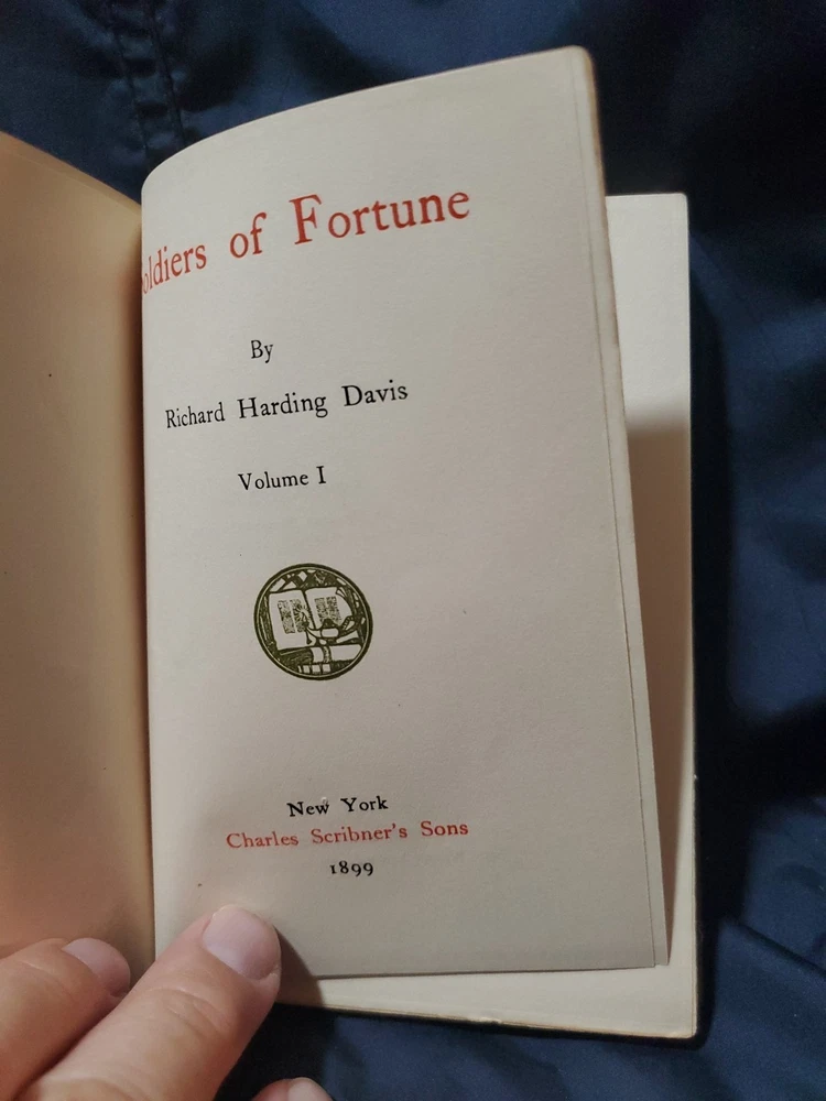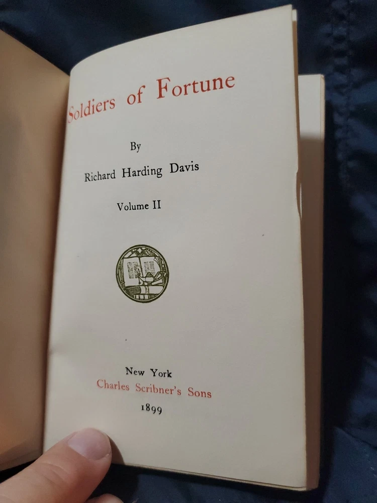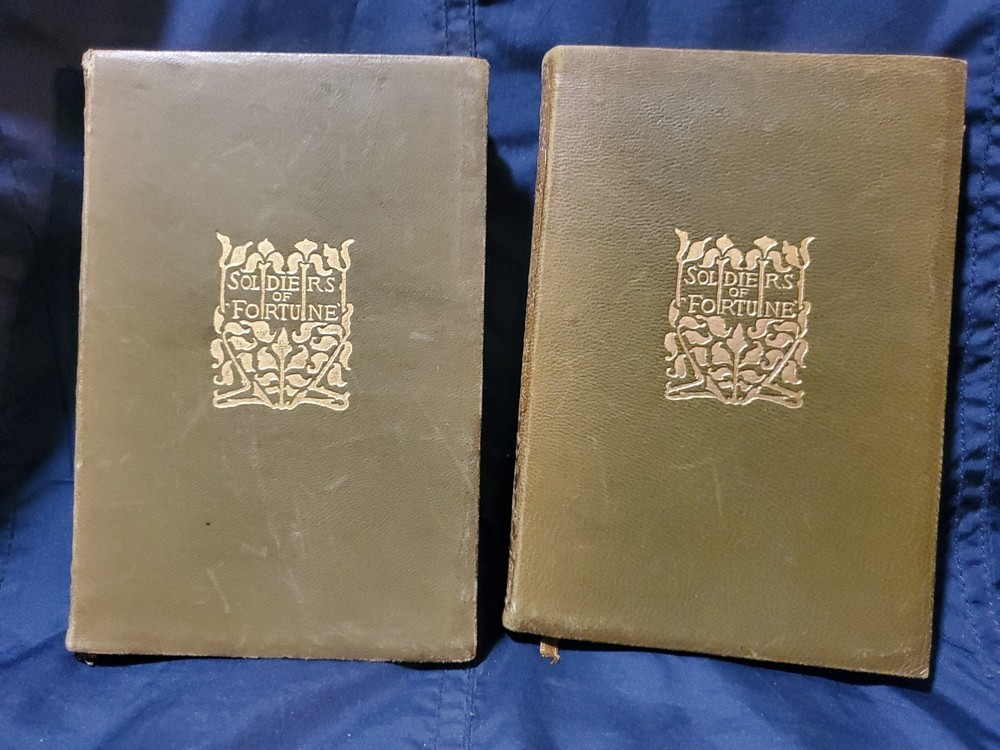 "Soldiers of Fortune" by Richard Harding Davis is a two-volume set published by Charles Scribner's Sons in 1899. Books measure 4x5.75 and were discovered at a South Carolina estate. Leather covers show wear from age and handling including discoloration. Binding and pages appear intact. There is natural page discoloration from age and handling. Overall these 126 year old books appear to be in good condition. Look closely at photos. I am not a professional grader of condition. Payment required within 48 hours. Please see my other listings for additional vintage and antique books and ephemera. Thanks for looking.