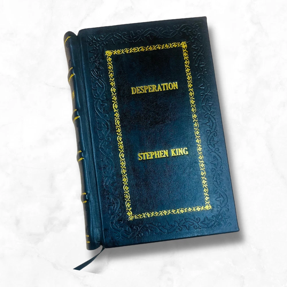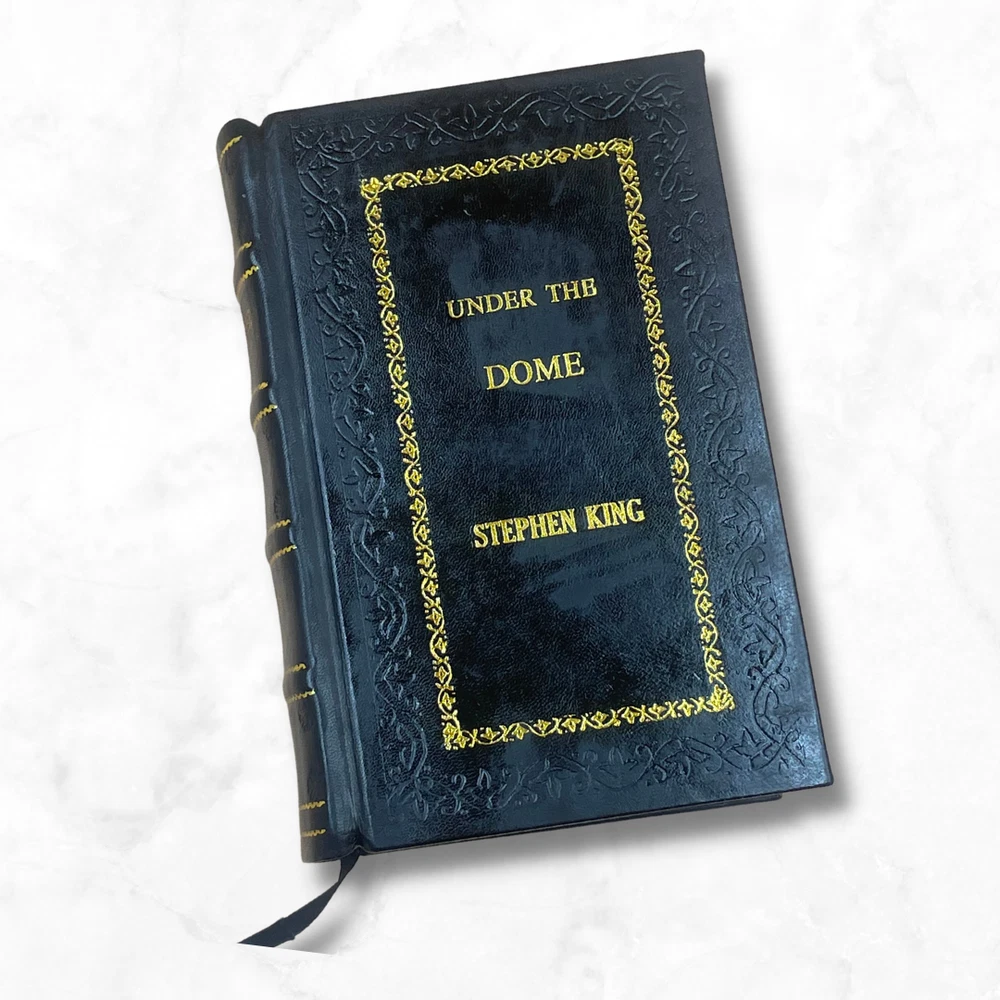 Gyan Books INTRODUCING A REMARKABLE LEATHER-BOUND EDITION, METICULOUSLY CRAFTED BY THE ESTEEMED INSTITUTION " RARE BIBLIO ". This title holds the distinction of being a Bestseller, highly praised by readers across the GLOBE. We are thrilled to present this literary gem exclusively to our elite readers, meticulously encased in our one-of-a-kind premium leather binding. Following your order we purchase the book from the original publisher/distributor and embark on the process of rebinding to elevate this book to a luxurious reading style. For the Binding, we use AUTHENTIC LEATHER, graced with opulent GOLDEN LEAF DETAILING on the SPINE, FRONT COVER, AND BACK COVER, ADDED BY EDGE GILDING. ABOUT THE BOOK Stephen King Books Enhance your gift-giving with this captivating collection of Stephen King books, ideal for surprising your loved ones. Immerse them in a series of ten original titles, including "Under The Dome," "Dreamcatcher," "It," "The Stand," "Desperation," "Duma Key," "Insomnia," "Salem's Lot," "The Shining," and "Carrie." 1. UNDER THE DOME : a small town in maine is suddenly and inexplicably sealed off from the rest of the world by an invisible force field, and its inhabitants must survive the chaos within. 2. DREAMCATCHER : four friends on a hunting trip encounter an alien invasion and discover they have psychic powers, leading to a battle for humanity's survival. 3. IT : a group of childhood friends reunite as adults to confront the evil entity that has haunted their town for generations, taking the form of a malevolent clown. 4. THE STAND : after a deadly virus wipes out most of humanity, the survivors are drawn into a final confrontation between the forces of good and evil. 5. DESPERATION : travelers passing through a small mining town encounter a malevolent force that has possessed the town's sheriff, leading to a battle for their lives and souls. 6. DUMA KEY : a man recovering from a traumatic accident moves to a secluded island in florida, where he discovers a supernatural talent for painting with dark consequences. 7. INSOMNIA : an elderly man begins experiencing strange phenomena and discovers he has gained the ability to see auras and otherworldly beings, leading to a battle against a mysterious evil force. 8. SALEM'S LOT : a writer returns to his hometown to discover that it has become overrun by vampires, and he must fight to save the remaining residents. 9. THE SHINING : a family is haunted by supernatural forces while serving as winter caretakers of an isolated hotel, leading to a descent into madness. 10. CARRIE : a teenage girl with telekinetic powers seeks revenge on her classmates after being humiliated at prom, leading to a catastrophic showdown. Crafted with meticulous attention to detail, each book in this set features a genuine leather cover that corresponds to the true color depicted in the storyline. The elegance continues with gold leaf gilding along the edges, marbled endpapers, and individualized placeholder ribbons, making these editions truly magical. For an extra touch of personalization, consider adding a custom-designed box to securely house these treasures for an additional cost of USD 25 per book. Our commitment to quality extends to the delivery process—we guarantee the safe arrival of your book set within 10-14 days. Every order is shipped via Priority Service ensuring that your magical gift reaches its destination in perfect condition. Unveil the wonder of Harry Potter with this exceptional collection, a gift that will be cherished for years to come. LEATHER COLOUR OPTION: - We offer a diverse range of LEATHER COLORS, including RED, GREEN, BLUE, BLACK, MAGENTA, YELLOW, TAN. We also offer multi-color labels with these beautiful books on special request. SELECT YOUR PREFERRED LEATHER COLOR AT NO ADDITIONAL COST. Simply provide the image code in the remarks field when placing your order. Points to note before placing order: We urge you to appreciate that our Leather-Bound Books are Genuine works of art and are Handcrafted by our Professional Craftsmen. Thus, requiring time and care to reach the pinnacle of excellence. We Prepare the Book after receiving the Order. We usually take 30 business days as handling time to dispatch shipment.