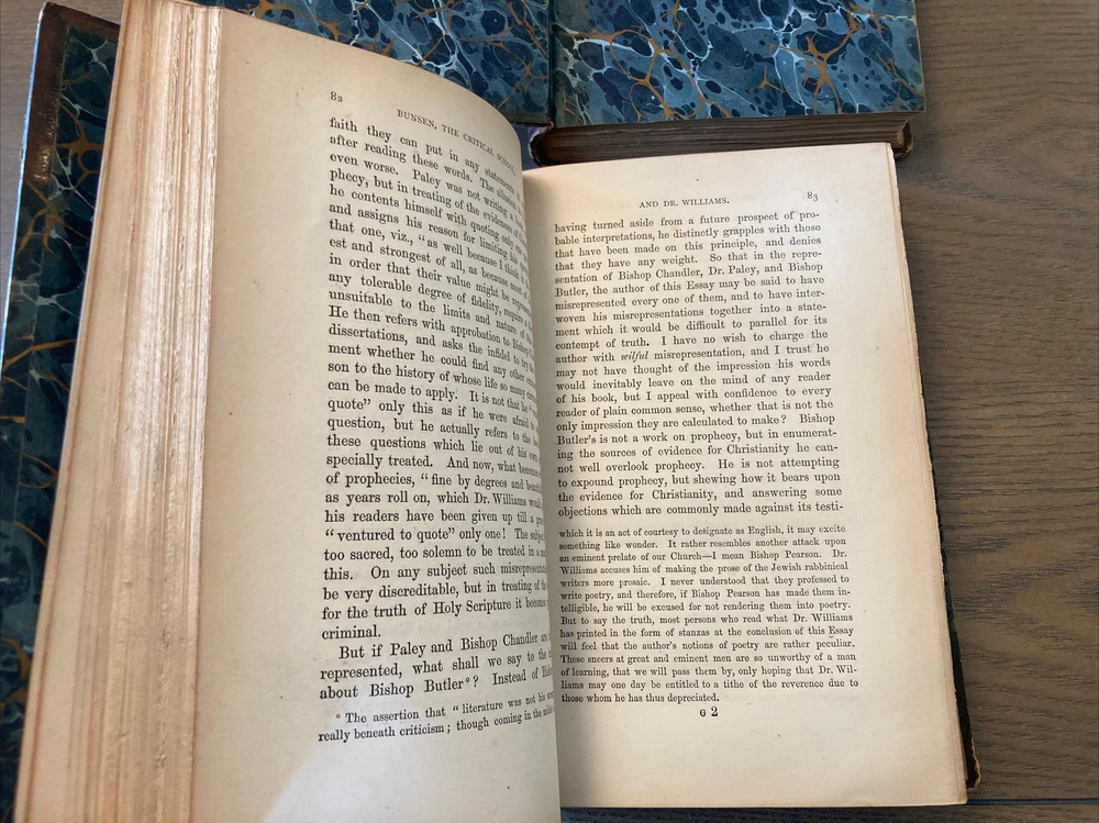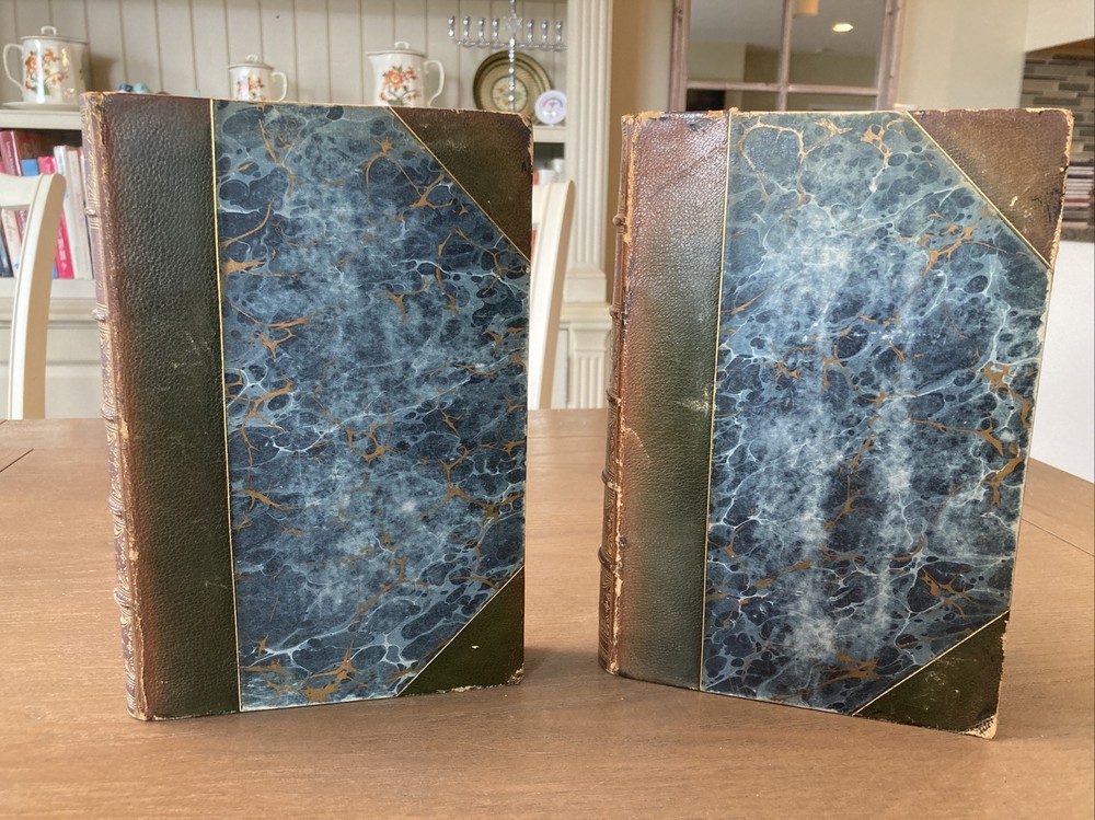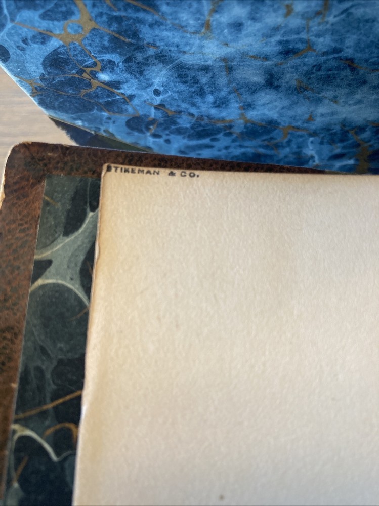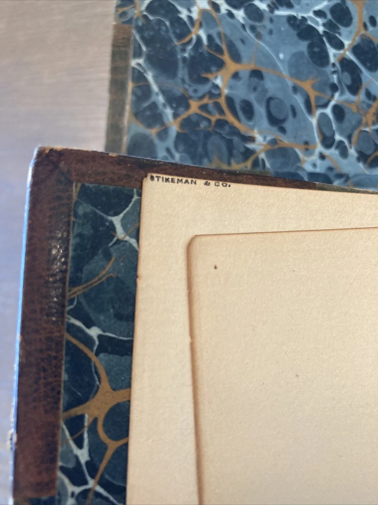 Printed in Oxford, fine leather bindings with lightly worn hinges, these books are holding up well. Marbled decorative boards and endpapers, the original volume is a bit under 400 pages and the responses is a bit under 500. Both books are 6 x 9. Stamped Stikeman and Company on the FFEP. International shipping is available and if you have any questions I’m always happy to help. Thanks very much.