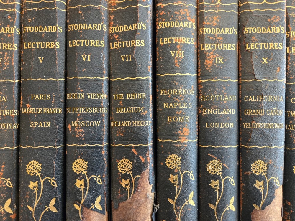 This is an antique set of Stoddard's lectures as he travelled the world. A marvelous collection of experiences from the 19th Century. The binding is only fair. But the print is great. This is a rare collection at a favorable price.