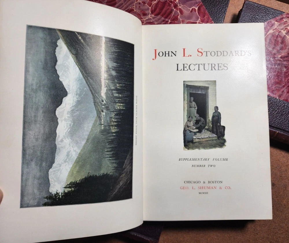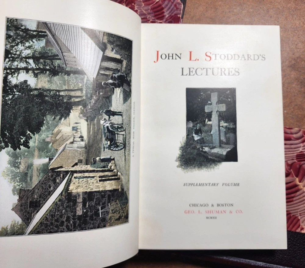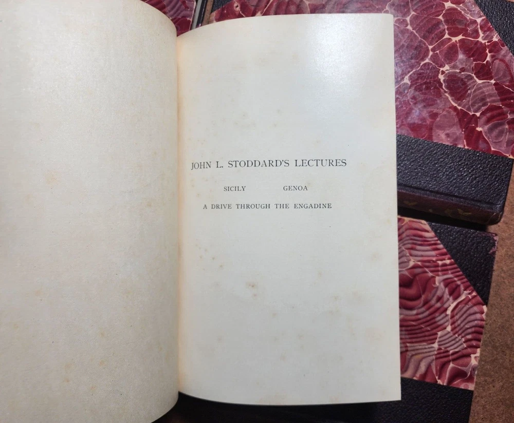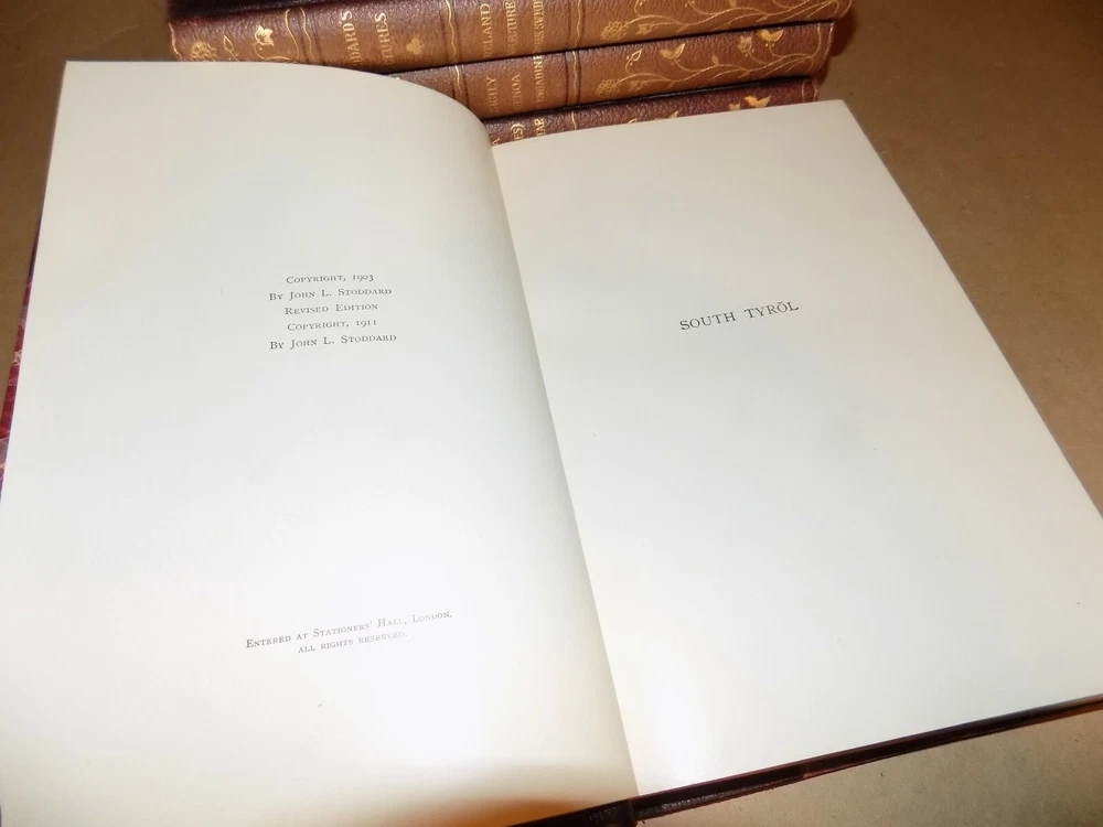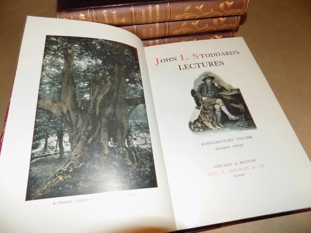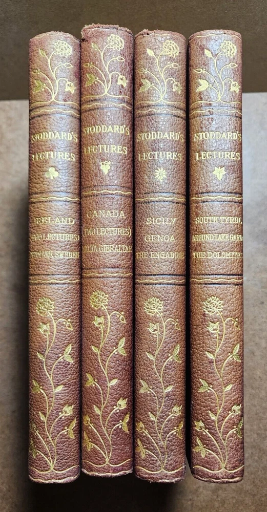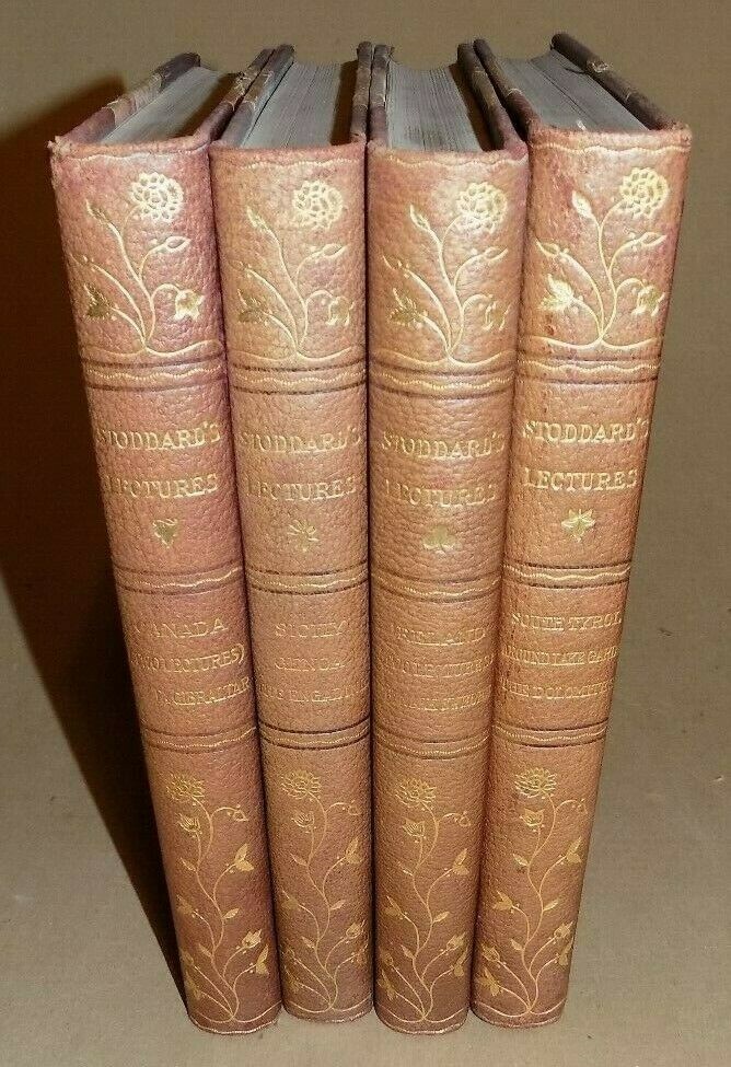 Stoddard's Lectures - Complete Supplementary 4 Volume Set - 1911 Bonded Leather All of these books are in good condition. All pages are in tact. NO rips or markings. Volumes 1-4 are included. Vol I - Ireland, Denmark Sweden Vol II - Canada, Malta, Gibraltar Vol III - South Tyrol, Around Lake Garda, The Dolomites Vol IV - Sicily, Genoa, A Drive Through the Engadine Please see pics. We have been selling books online since 2003. Our book stock covers a wide range of subjects such as First editions, Signed editions, Fiction, History, and many more. Our Guarantee Any purchase can be returned for any reason; we will fully refund the purchase price if notified within 30 days of receipt and the book(s) is returned in the same condition as sent. Shipping charges will also be refunded if the book has been incorrectly described. Shipping All books shipped to US destinations are sent US Post Office Media Mail. Faster shipping is available, please ask before paying. We will combine shipping on items purchased at the same time.