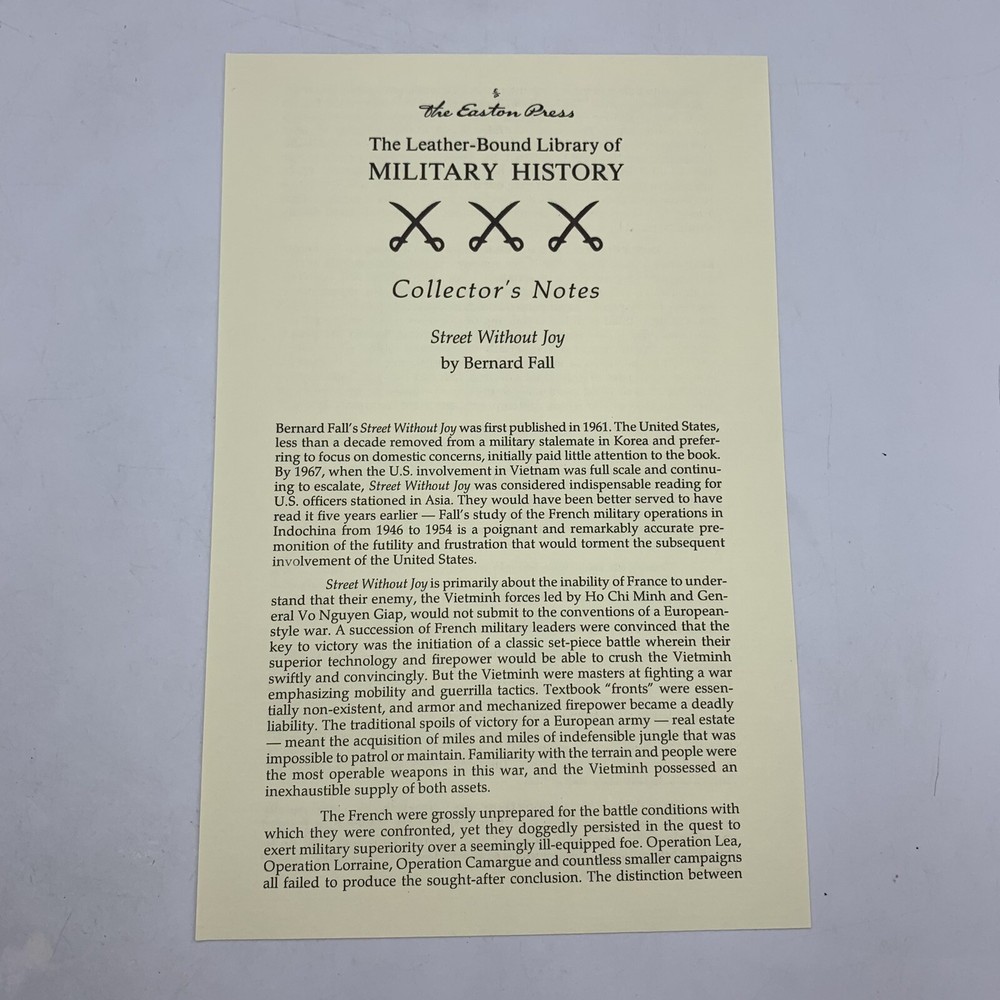 Street Without Joy - Collector’s Edition Easton Press Bernard Fall Leather Bound. Includes Collector’s note. Name written on inside page.