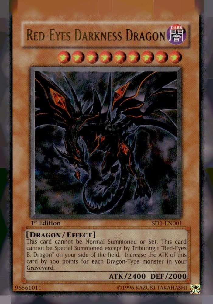 This is a nice example of a Structure Deck: Dragon's Roar #SD1-EN001 Red-Eyes Darkness Dragon Other important information about this card: Ultra Rare In 2005 Red-Eyes Darkness Dragon played for the . Please check out our other listings for more great cards.