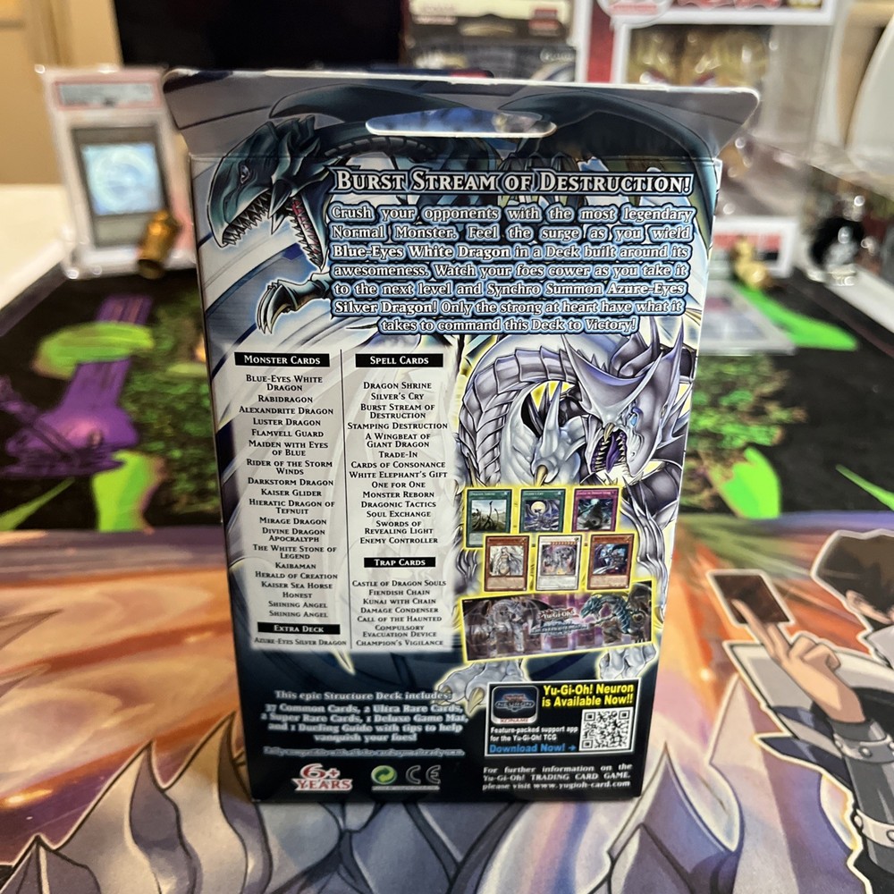 The Structure Deck: Saga of Blue-Eyes White Dragon Unlimited Edition is a sealed Yu-Gi-Oh product containing cards from the Yu-Gi-Oh Starter & Structure Decks set. This collectible card game set features the iconic Blue-Eyes White Dragon card and is perfect for players seeking to expand their collection or enhance their gameplay experience. With cards sealed and ready to be used, this deck offers a convenient and exciting addition to any Yu-Gi-Oh player's collection.