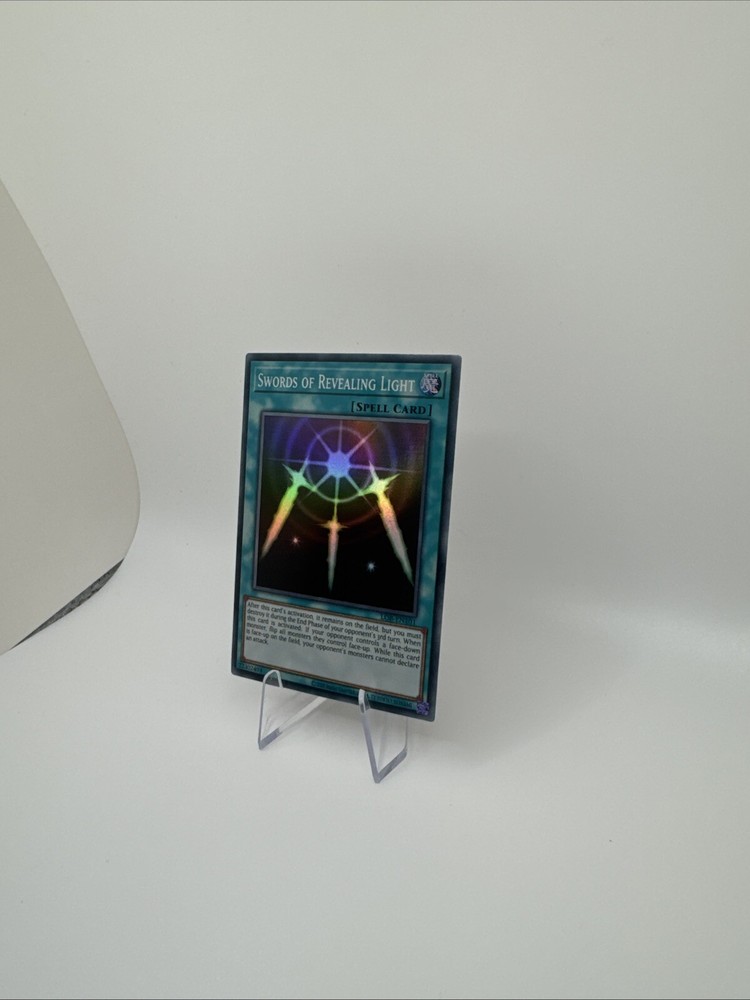This card is pristine!! Pulled fresh from pack and put immediately into top loader! Swords of Revealing Light is a Super Rare Spell card from the Legend of Blue Eyes White Dragon set in the Yu-Gi-Oh! TCG. It features a Light Dragon with 0 Attack/Power and 0 Defense/Toughness. The card is in English and has unlimited availability. It is a speciality LEGEND card that hails from the 25th Anniversary Edition of the set.