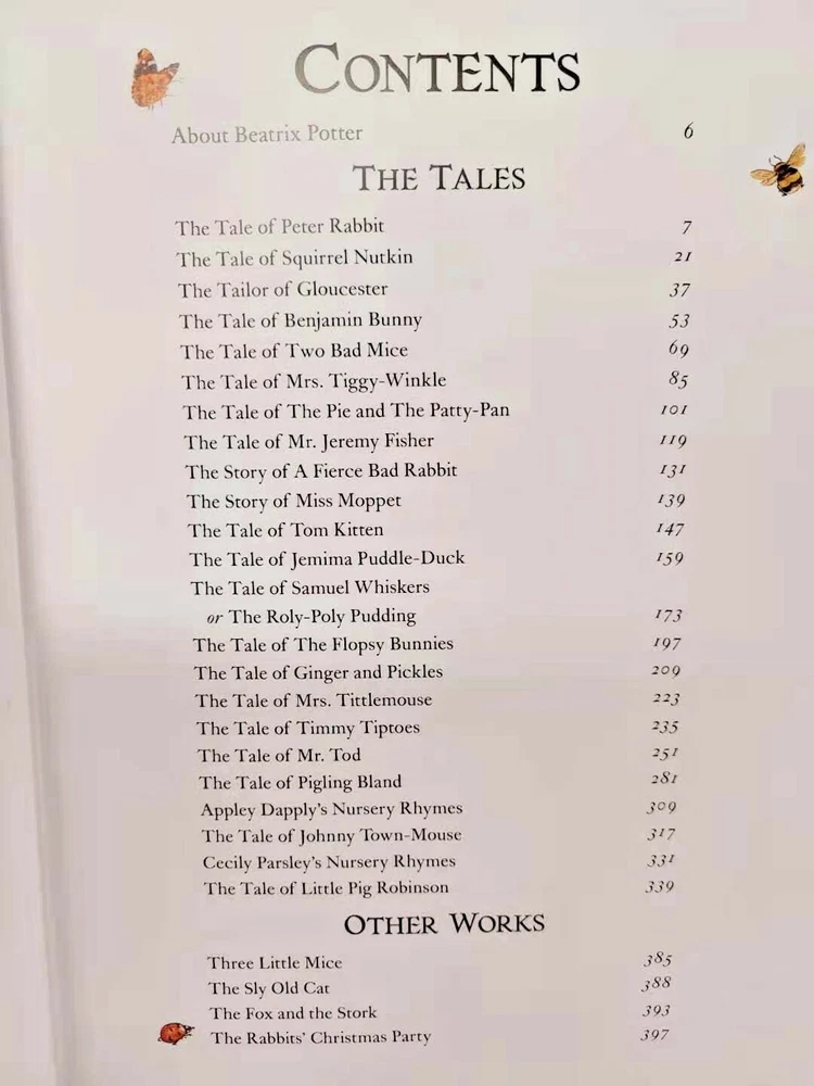 Publisher: Penguin Publishing Group Publication date: 3/3/2015 Weight: 2.9 lb Pages: 408 Product dimensions: 8.10 (w) x 10.20 (h) x 1.20 (d) This complete and unabridged collection contains all 23 of Beatrix Potter's Tales in one deluxe volume with all their original illustrations. The stories are arranged in the order in which they were first published so they may be read in their proper sequence. A special section at the end of this volume contains four additional works by Beatrix Potter that were not published during her lifetime.