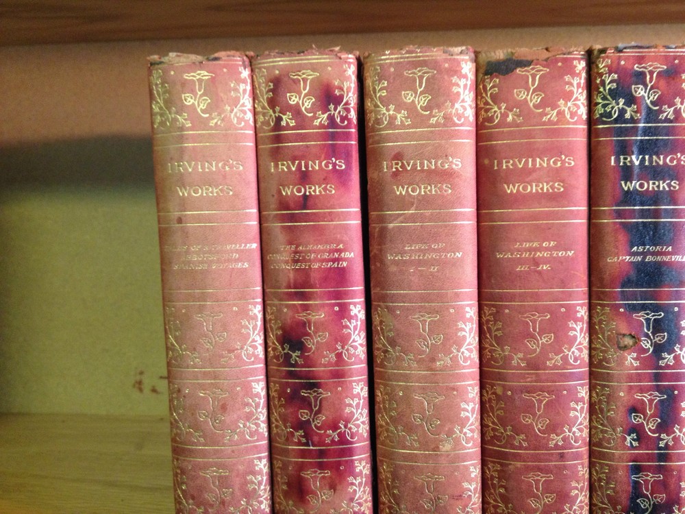Please Visit our Store Page & Try Our Newsletter For All The Latest Listings. SHIPPING, We only ship to the listed 'Confirmed' Paypal address that our recorded eBay label now automatically prints from so there's no shipping disputes. A bookseller for over 40 years, we stand behind all our sales with 100% refund guarantee. Check our feedback & bid with confidence. Ex library/book club/remainders mentioned if applicable, queries not necessary. ------------------------------------------------------ KELMSCOTT SOCIETY not dated circa 1900, 9 Volumes from presumably a larger set (there are many Irving sets of various lengths), vols around 400p or more, frontis plates with tissue guards. Heavier quality paper, top edge gilt. Quarter burgundy leather spine binding, (spines, age lightened to tan) spines leather tooled with gilt titles and decorative motifs. Burgundy boards . INTERNALLY all volumes generally handsome, clean, supple, quality paper holding up, plates nice, light aging, VG+ NOTE BOARDS generally tight, solid, leather with general age scuffing, drying, fading, edge scuffing/fraying, SPINES well worn cracked, edges somewhat frayed overall VG or a bit better NOTE SPINE CONDITION ON...ONE of the old leather spines is very well worn, stained dark soiling spots, frayed, with hinges cracked coming away a bit, still bound solid (SEE SCANS-NO COMEBACKS/RETURNS PLEASE ) VG- ONLY else overall a nice set. Collectable set, though with outer cover handling age wear especially on spines, internally a pleasure to handle and read. Includes MOORISH CHRONICLES, LIFE OF WASHINGTON (2 VOLS), TALES OF A TRAVELLER,THE ALHAMBRA, CONQUEST OF SPAIN, HISTORY OF NEW YORK, THE HUMORIST/G CRAYON, LIFE/VOYAGES OF COLUMBUS, ASTORIA,SKETCH BOOK, CRAYON PAPERS +++ (email with any questions) Scarce with plates. PRICE BROUGHT WAY DOWN, NO RETURNS, NEGS, COMEBACKS PLEASE, WE'VE BEEN V CLEAR ON COVER CONDITION EITHER TAKE 'AS IS' SCARCE, INTERNALLY LOVELY WITH SOMEWHAT WORN BINDINGS OR JUST PASS Insured S&H with delivery confirmation USA, see calculator, heavier lot. _______________________________________ NO INTERNATIONAL on this item STANDARD SHIPPING. All our domestic shipments have tracking which you can check. PAYMENT, Payments need to be received within 4 days after auction close. SHIPPING/BILLING. We are normally able to ship within one business day of receiving payment.. Items paid for Fri & weekend will ship Mon. BEST OFFERS. We list all our items at realistic fair market value so you can safely 'Buy It Now' before anyone else or make an offer. All reasonable offers we will respond to. WRAPPING. We've been selling & shipping items, books, pulps & comics for many years. We wrap our own tried and tested way fully protected, admonitions to wrap carefully are unnecessary, you'll be happy.. Note our fine feedback on the care we take. Powered by eBay Turbo Lister The free listing tool. List your items fast and easy and manage your active items.