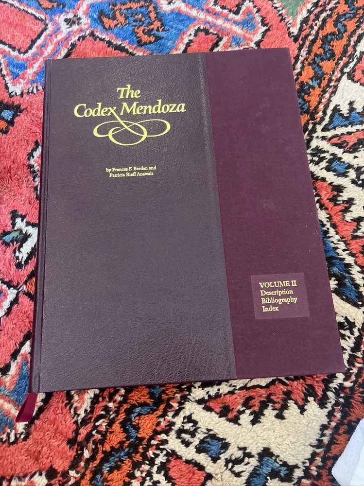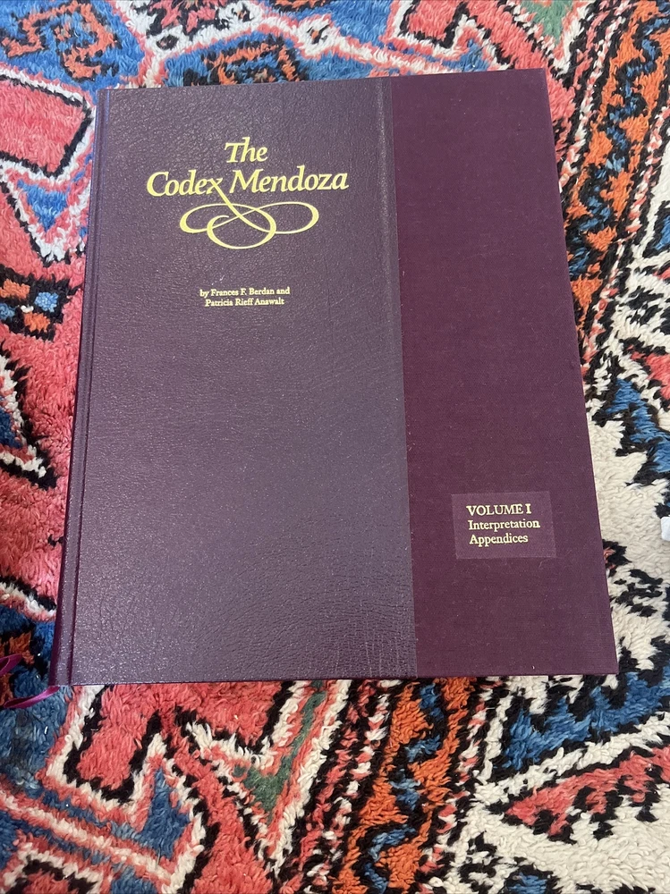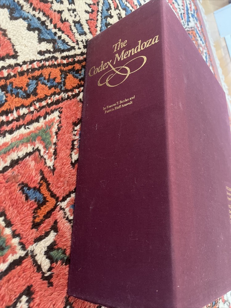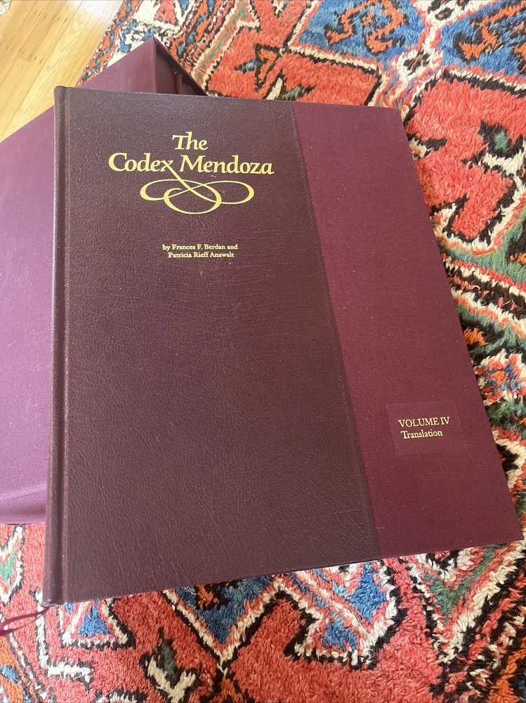 Please ask any questions as sales are final. The highly collectible book set is in good condition. I’ve tried to take pictures of any flaws. Synopsis: This four-volume hardcover facsimile edition of Codex Mendoza places the most comprehensive, most extensively illustrated document of Aztec civilization within reach of a broad audience. Compiled in Mexico City around 1541 under the supervision of Spanish clerics, the Codex was intended to inform King Charles V about his newly conquered subjects. The manuscript contains pictorial accounts of Aztec emperors' conquests and tribute paid by the conquered, as well as a remarkable ethnographic record of Aztec daily life from cradle to grave. This four-volume publication is an unsurpassed source of information about Aztec history, geography, economy, social and political organization, glyphic writing, costumes, textiles, military attire, and indigenous art styles. Volume 1 contains interpretive essays by the authors and other leading specialists on every aspect of Codex Mendoza. Volume 2 offers a thorough description and discussion of each pictorial page, and Volume 3 is a complete color facsimile of the manuscript itself. Volume 4, a parallel image volume, is the most innovative and in some ways the most useful of the four. It provides an exact duplicate in black and white of the facsimile Volume 3, with the sixteenth-century Spanish text transcribed and then translated into English. In addition, all the glosses are translated and positioned exactly as on the original pictorial pages. The extensive and useful appendices add such things as pictorial charts of costumes and textiles, translations and discussions of all the glyphs in the codex, and a table of comparative chronologies. In making this extraordinary sixteenth-century work accessible (the original manuscript resides in the Bodleian Library, Oxford, England), the authors have performed an invaluable service to Mesoamerican scholars and all those interested in pre-Columbian peoples. From the Inside Flap: "A virtual treasure-trove of ethnographic detail on selected aspects of Aztec culture and society. . . . The new facsimile edition places this important source more directly in the mainstream of ethnohistorical research."—H. R. Harvey, University of Wisconsin-Madison "By far the most complete source on the Mendoza ever published [with] a group of contributors of very high caliber. . . . No work I am aware of comes even close to combining a reproduction of the document with the various commentaries on its production, its historical background, authorship, and social context. These discussions make the work highly accessible to non-specialists."—Richard E. Blanton, Purdue University "About this title" may belong to another edition of this title. https://www.abebooks.com/servlet/BookDetailsPL?bi=31097346449&ref_=ps_ggl_11147913055&cm_mmc=ggl-_-US_Shopp_Textbook-_-product_id=COM9780520062344USED-_-keyword=&gclid=Cj0KCQjwoeemBhCfARIsADR2QCv8HTeAR3Ds7zLZT7t8InTzfyH6LHuFH3zv48YjgGjiimXGTyzA_l8aAkYuEALw_wcB