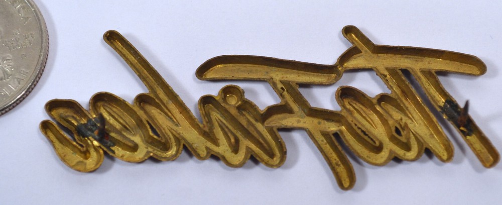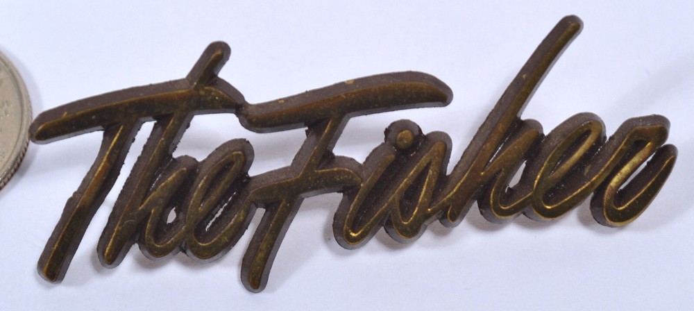 THE FISHER BRASS AVERY CONSOLE SPEAKER BADGE Fisher Console Badge QTY: 1 OVERVIEW: Brass press on badge from a Fisher Console. Swivel moves easily. Heavy Duty Zinc construction. Measurements 2.5" L X 1" Tall. Two sharp pins on back. It looks like there is some bending between the E and R, Did not try to fix. Good Condition! SHIPPED WITHIN THE 48 STATES. WELL PACKED. WE SHIP USPS FIRST CLASS MAIL. Pay Pal, Master Card, Visa. All items described as accurately as possible so bid with confidence! All vintage gear sold as is. NO INTERNATIONAL SHIPPING. " TUBES R US " High End, Home Theater, Scientific, Electronic test gear, TUBE Amplifiers and Electronic Parts. SEARCH DOES NOT SHOW ALL ITEMS IN E-BAY STORES. Track Page Views With Auctiva's Counter