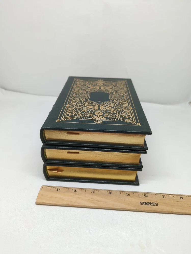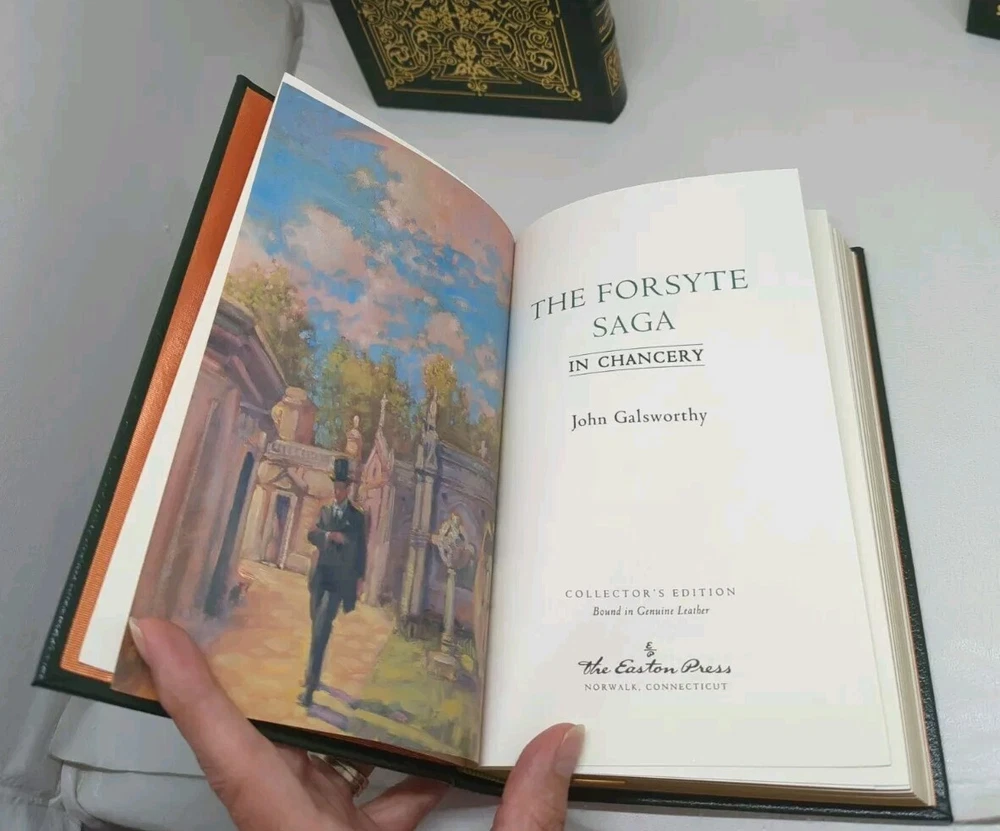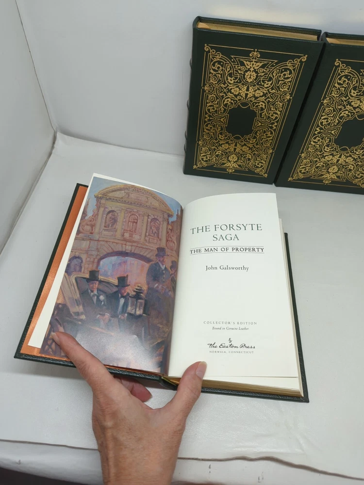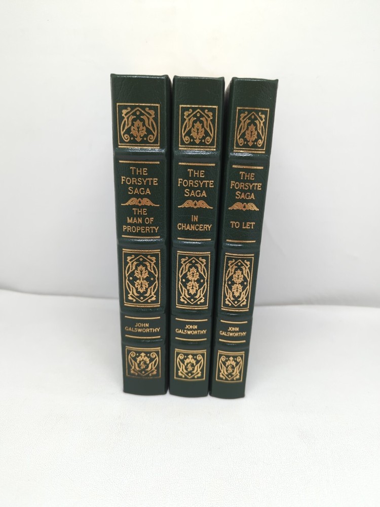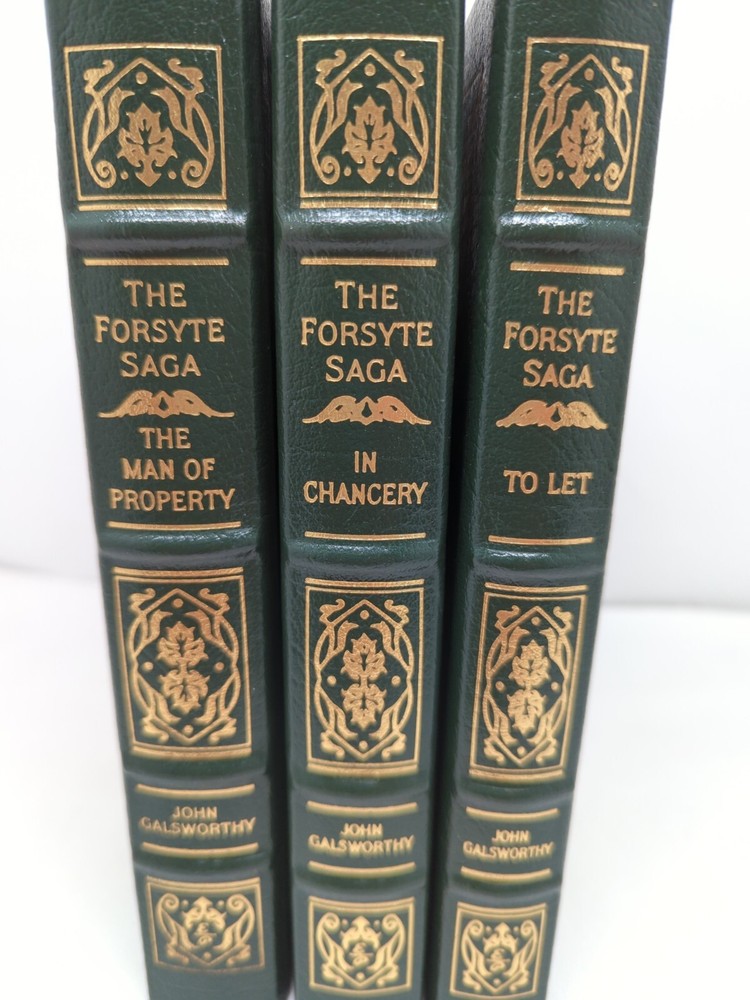 THE FORSYTE SAGA By John Galsworthy Set of 3 Leather Bound books published by the Easton Press in 2003 Lot includes: * The Man of Property * In Chancery * To Let Beautiful books in very good, gently used condition. These do have ex-libre book plates from the original owner. Please review all photos provided which includes some measurements.