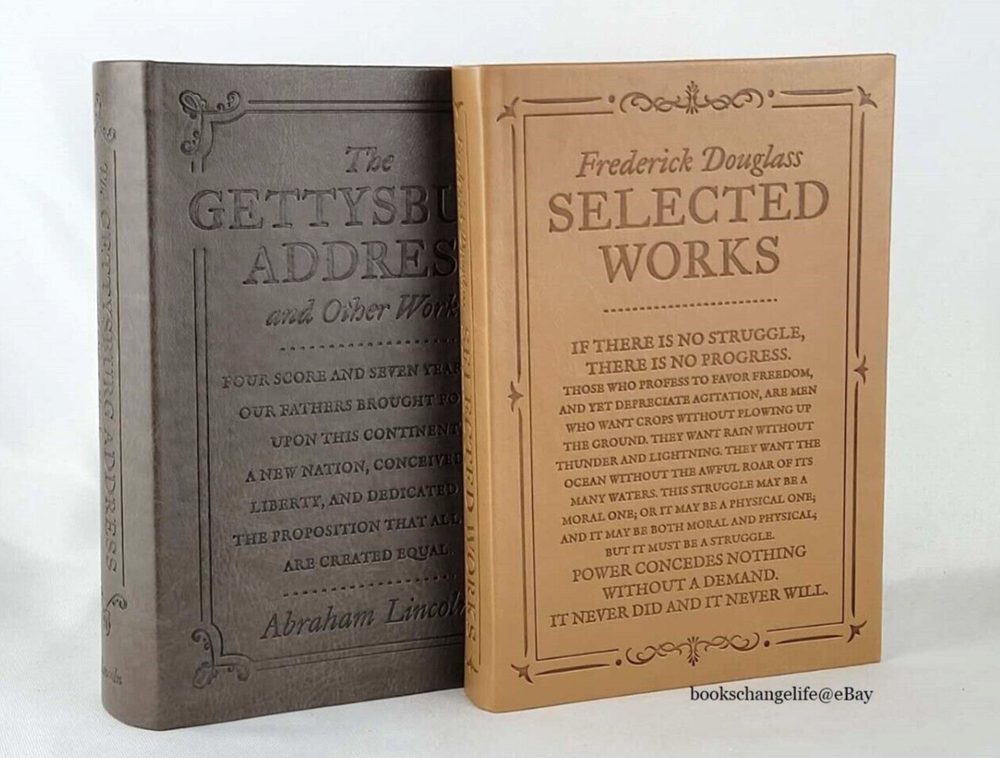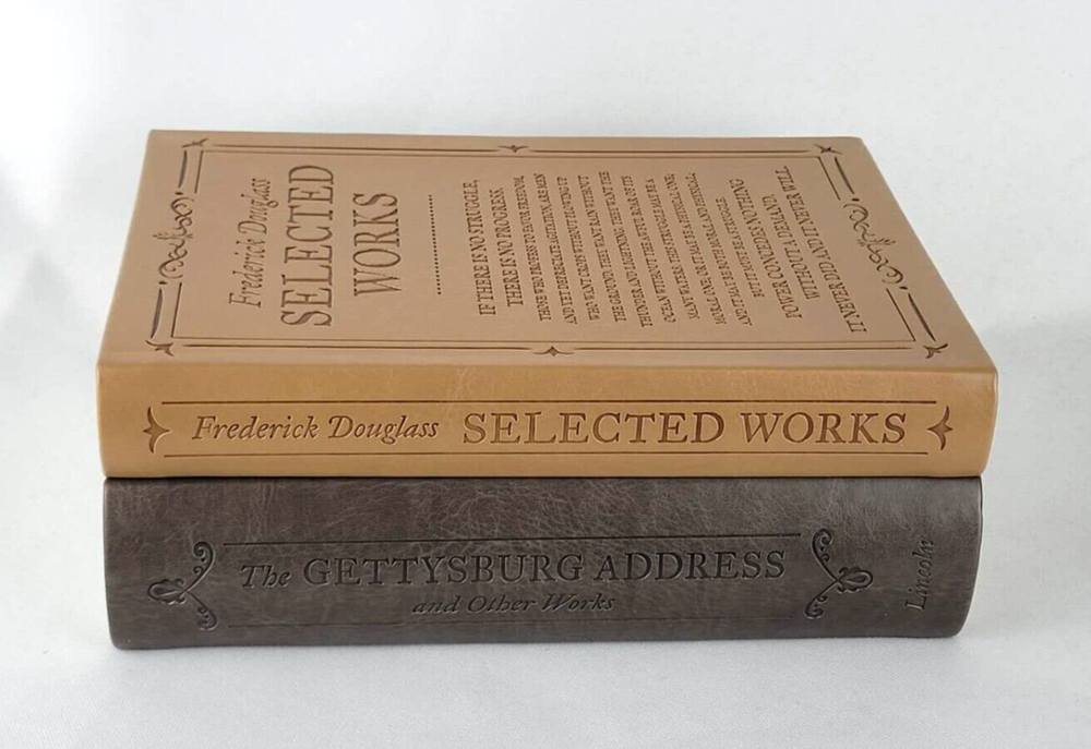 This special edition features an elegantly designed cover and a durable flexible binding. It is an indispensable addition to any home history library. Publisher: Fall River Press total weight: 4 lb Size of each title: 8.3"x5.7"x1.5" 2 titles included: The Gettysburg Address and Other Works Frederick Douglass: Selected Works