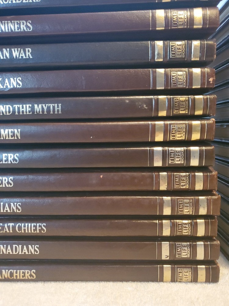 Take a journey through the American Old West with this complete set of 26 volumes from Time Life Books. Immerse yourself in the history and culture of the region with nonfiction narratives and vivid illustrations. Each book is hardcover and faux leather bound, making them a durable addition to any collection. Explore the topics of America's Old West with various authors and discover the rich heritage of the region. This vintage set was published in the 1970s and is in English language. Perfect for history enthusiasts, this collection is a must-have for any book lover. Will ship in 2 boxes to protect books. See pics for actual items. One volume has paint on cover as shown.