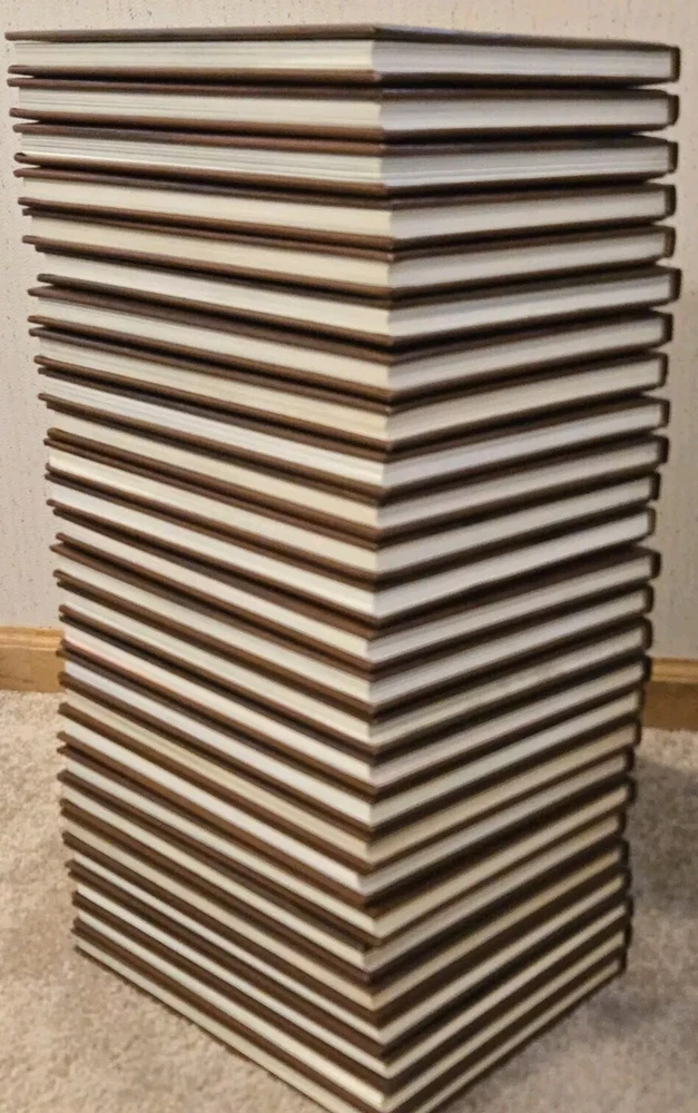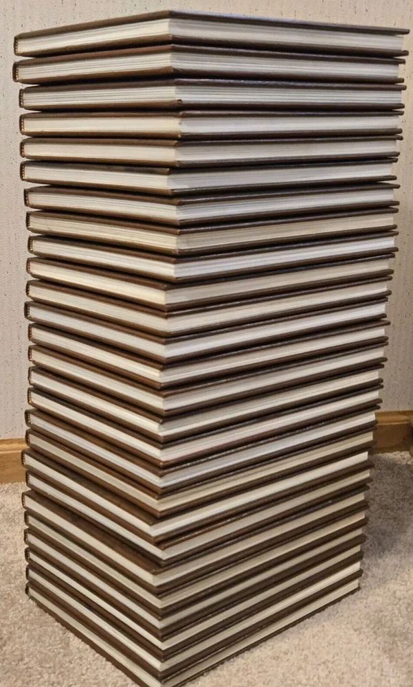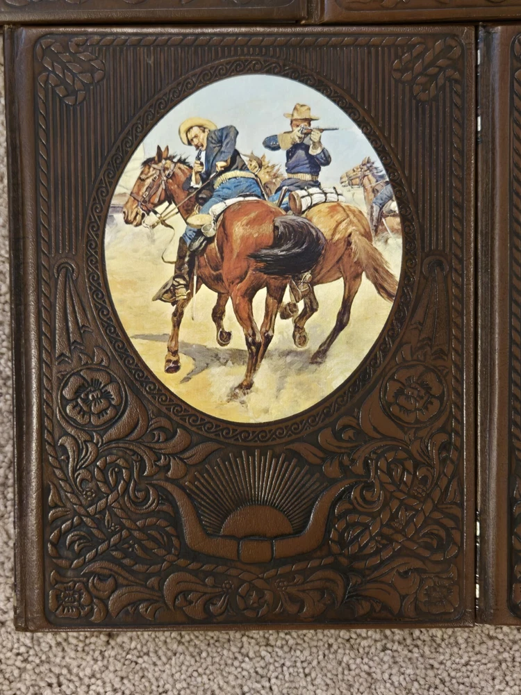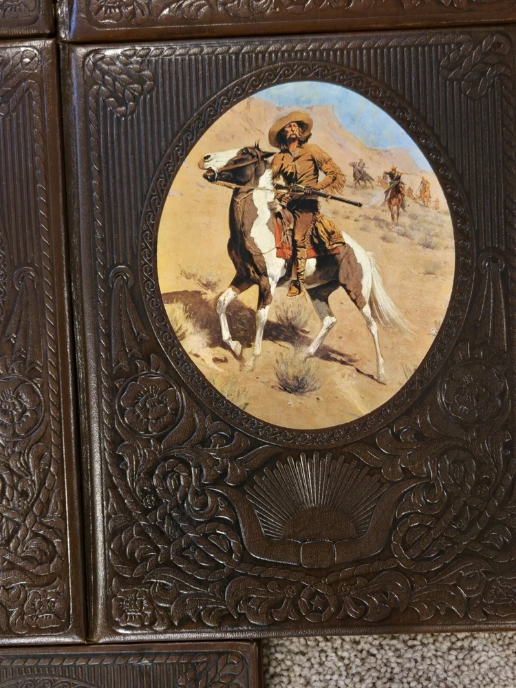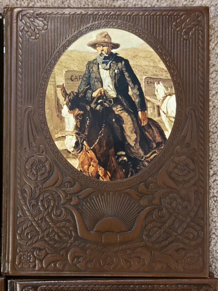 The product is a collection of 26 volumes titled "THE OLD WEST" by various authors, published by Time Life Books in the 1970's. The books are nonfiction, focusing on the history of America's Old West. They are hardcover, faux leather bound, and illustrated, providing a detailed look at this iconic era. A few books have previous owner name written in them. Overall very good condition. See photos.