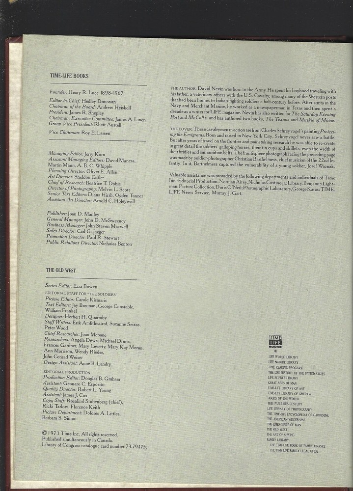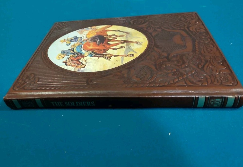 The product is a vintage hardcover picture book titled "The Old West 'The Soldiers'" from the Time-Life Books series, published in 1973. It is a nonfiction book focused on American history, specifically the soldiers of the 1800s. The book features faux leather binding, illustrations, and tactile elements, with a total of 240 pages. Intended for young adults and adults, it covers topics related to Western history and social science. Description is by e-Bay AI I will combine shipping See photos and scans of the actual item