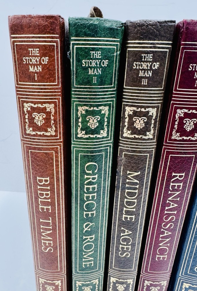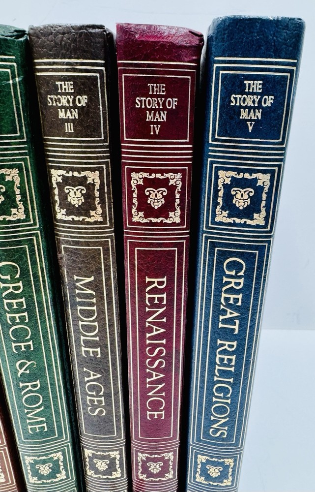 Delve into the past with the complete set of "The Story of Man" Volumes I-V, a treasure trove of historical insight published by the National Geographic Society in 1977. Each book in this five-volume series explores various aspects of society throughout history, providing a comprehensive view of human development across different eras and regions. Crafted for both young adults and adults, these hardcover books are a great addition to any history enthusiast's collection. Featuring luxurious faux leather binding and ample illustrations, they offer not just intellectual stimulation but also a visually enriching experience. Whether you're a student, educator, or simply a curious reader, these volumes will transport you through time and space to understand the story of our global society.