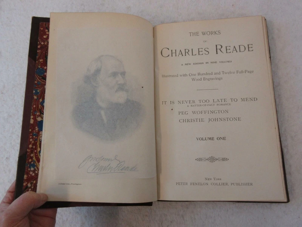 Complete 9-Volume Half Leather Set of Charles Reade Works Collier 1900s Edition