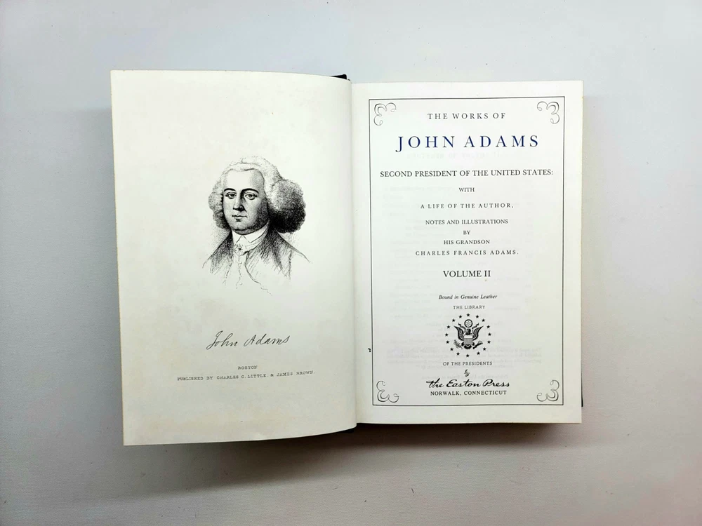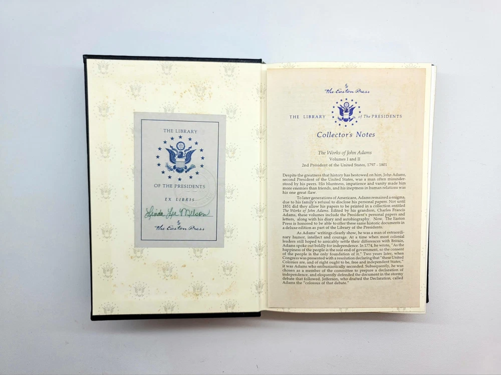 THE WORKS OF JOHN ADAMS - Easton Press - Library Of Presidents - 2 Volume Set This is a used book with general edge and shelf wear, some fading to the covers and spotting on gilded page edges. Some minor foxing, but does not affect the content. No writing or Highlights. Please utilize pictures to determine the exact condition of each item. If you have a question, please send a message, and I will answer you promptly. Thanks for looking.