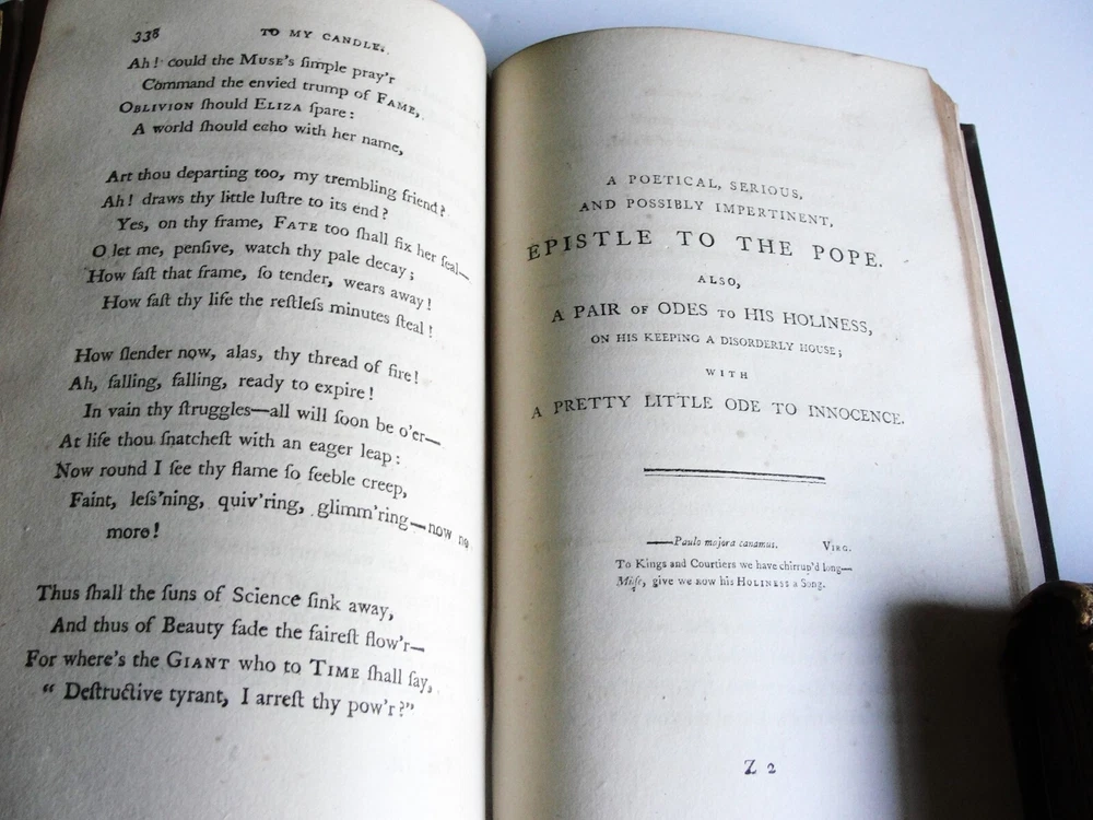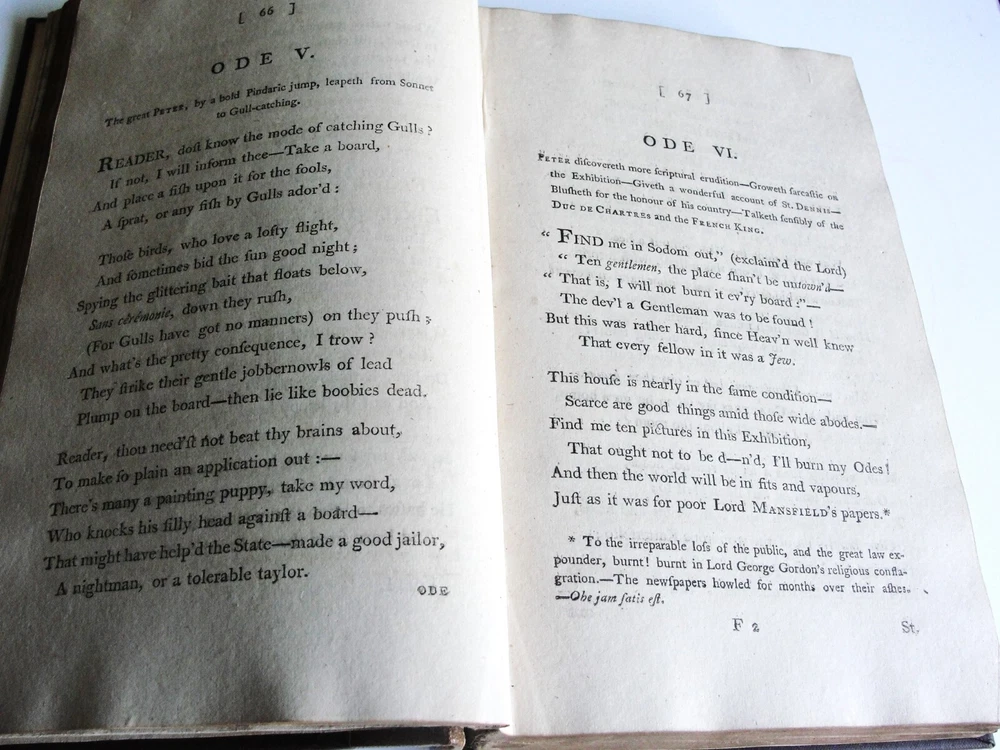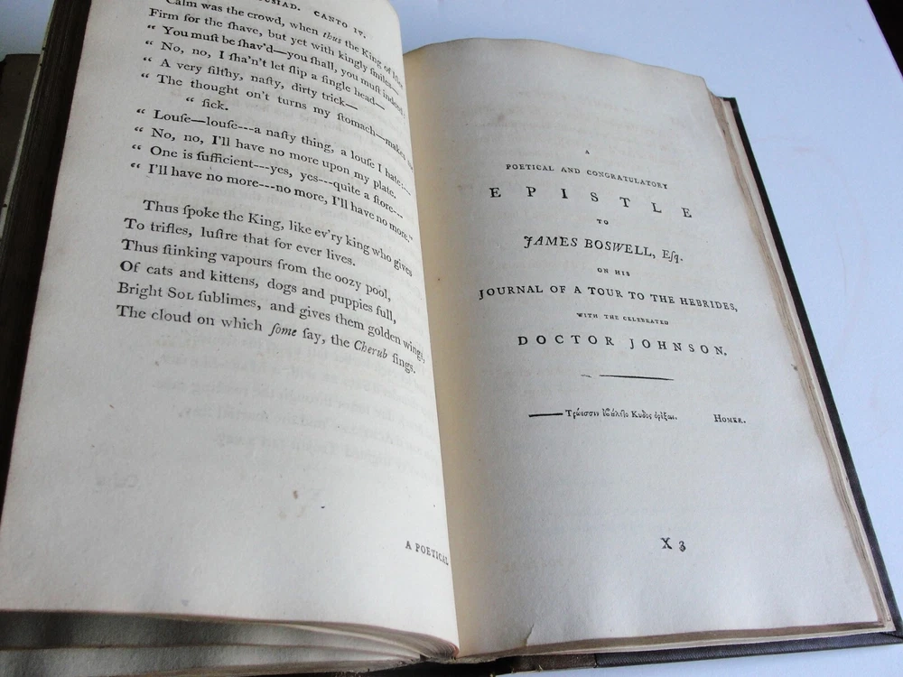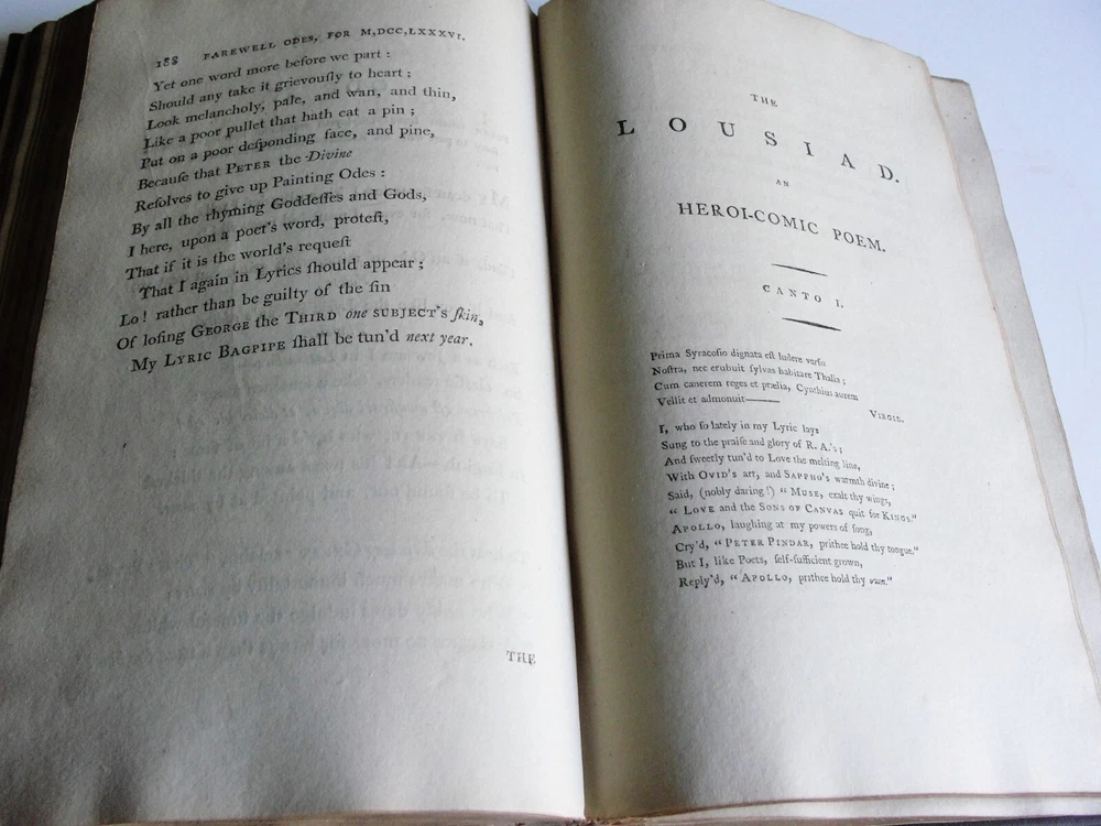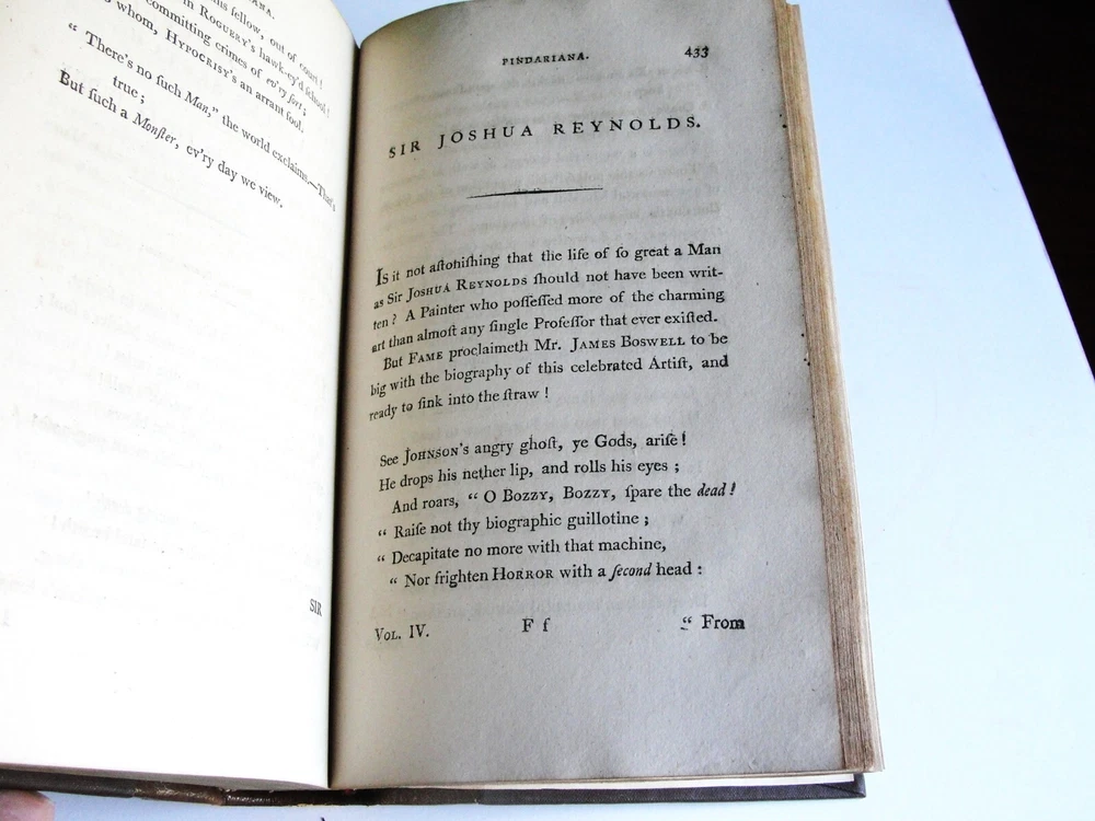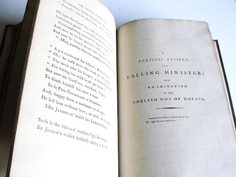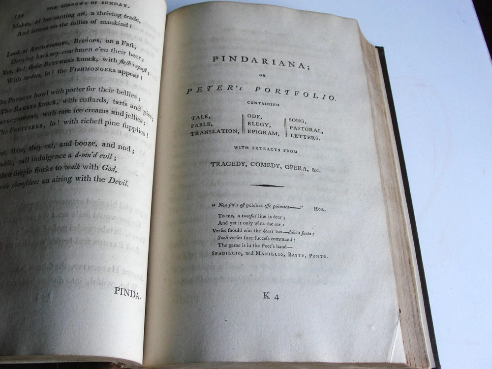 You are bidding on the: For your consideration is a Lovely, Vintage- THE WORKS OF PETER PINDAR, ESQ by WOLCOT, John , 1794[-1796]. Four octavo volumes set. 1794. [WOLCOT, John]. THE WORKS OF PETER PINDAR, ESQ. London: Printed for John Walker, 1794[-1796]. Four octavo volumes, of an eventual five published. Vol. 1 has an engraved portrait of Wolcot, identified only by his pseudonym Peter Pindar, and each volume has an engraved title-page. Peter Pindar was the pen-name of John Wolcot (1738-1819) a doctor from Truro who achieved some fame in the 1780s through his gift for comic verse, in particular, verse that poked fun at the foibles of the court and royal family. Wolcot's lasting legacy is his observation that George III said 'what what' a lot. John Wolcot (1738-1819) was a popular English poet and satirist of contemporary artists and writers, and of royalty in particular. (He is reported to have said that the king had been a good subject to him, and he a bad one to the king.) At the time of publication, this set marked the most complete collection of the poet's work. In 1793 Wolcot sold the copyright of his existing works to John Walker, the publisher, for an annuity; at that same time, it was stipulated that Walker should have the right of refusal for all of Wolcot's future work. The expanding nature of the edition is evident on the title pages of the volumes; Vols. 1-3 say "in three volumes," and Vol. 4 says "in four volumes." The fifth, and final, volume was eventually published by Walker in 1801. Size: 8.5' x 5.5' each book- 444+, 495+, 431+, 500+ Pages. Condition: Good with some vintage wear and staining on pages. Cosmetic condition is as clearly and accurately shown in the high-definition pictures provided. Please inspect all of them carefully. Overall, a rarity and very uncommon. A really great Vintage Book Set to add to any good collection.