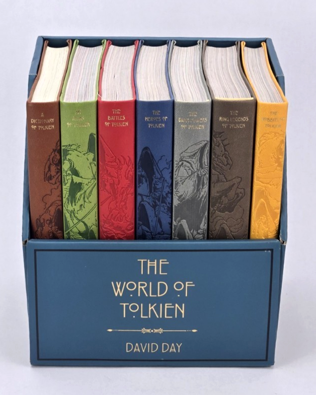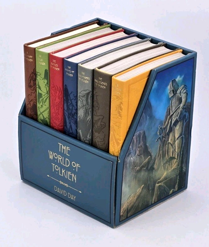 The World of Tolkien 7 Book Box Set, Bonded Leather with Stunning Illustrations by best-selling author and Tolkien expert David Day. Immerse yourself in the world of J.R.R. Tolkien with this fascinating series about Middle Earth and all the characters in it. Books include: An Atlas of Tolkien A Dictionary of Tolkien The Heroes of Tolkien The Hobbits of Tolkien The Ring Legends of Tolkien The Battles of Tolkien The Dark Powers of Tolkien This book set is in excellent - fine / near fine - condition. They may have been opened for inspection, but have not been read. Please use the photos as part of your condition description. All of our collectable books came from a single estate and are carefully stored in a smoke-free, pet-free private library. For the care and safety of your book, we ship via USPS with quadruple protection packaging (tissue paper, bubble wrap, cardboard, and poly padded mailer). Buy with confidence. Your satisfaction is my highest priority. If you are unhappy with your purchase for any reason, simply return it for a full refund. CLICK HERE TO SEE MY STORE and be sure to click the heart under the banner to follow.
