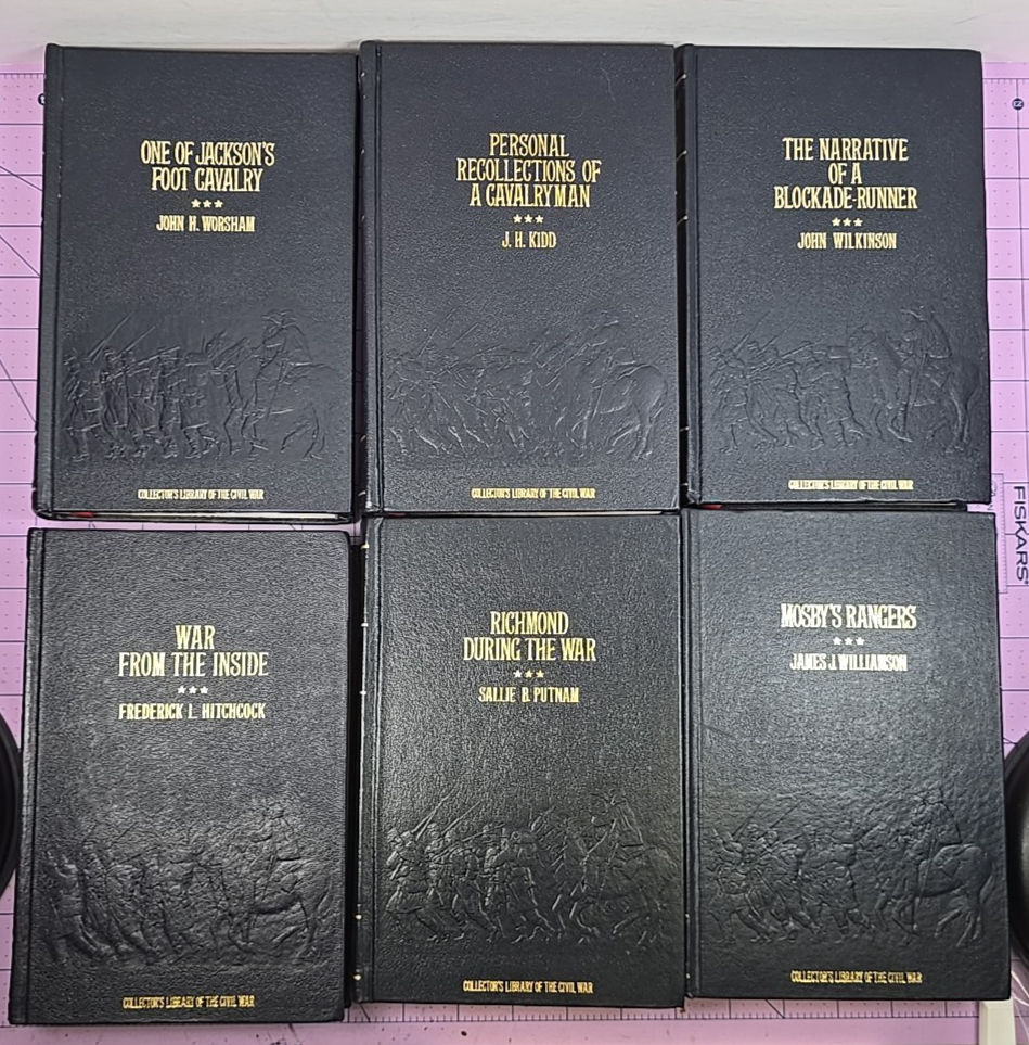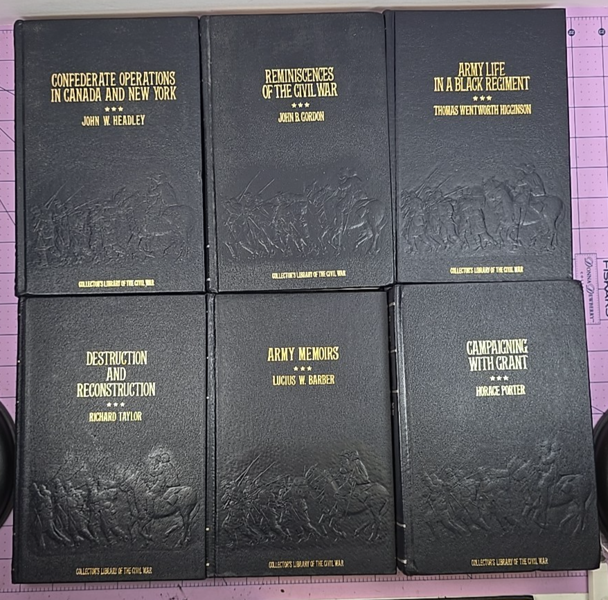 TIME LIFE COLLECTOR'S Library of the Civil War COMPLETE SET 30 Volumes. The majority of the volumes are in excellent condition. The red ribbon bookmark on some volumes is frayed at the ends. "Detailed Minutia of a Soldier's Life" has a scratch or rubbing on the cover. "Hardtack and Coffee" has wear to the edge of the pages. Some volumes include the single page excerpt sheet and the card. See photos. The box is heavy. Extra padding and bubble wrap has been added to minimize wear in shipping. Will ship via USPS media mail or Fedex, whichever is most economical depending on your location.