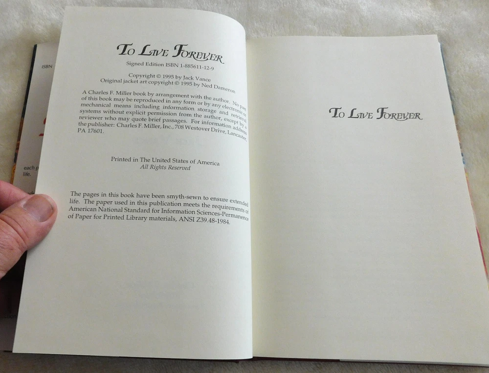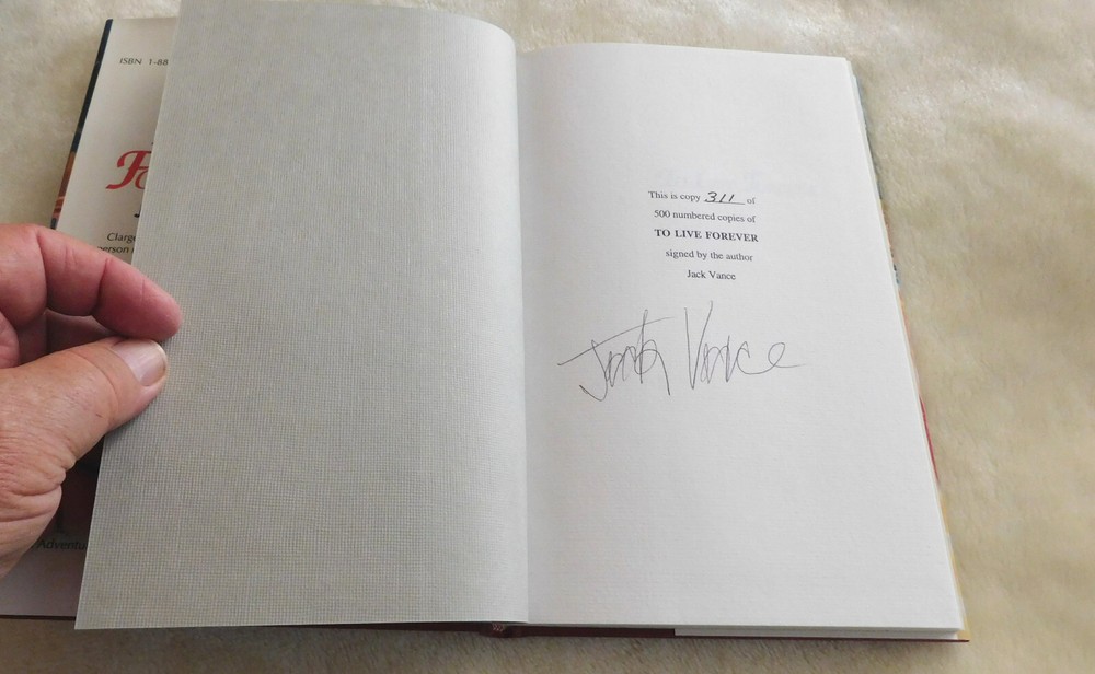 FREE US SHIPPING TO LIVE FOREVER By Jack Vance BOXED LTD ED 1995 DJ MINT SIGNED 311/500 FROM CHARLES F MILLER $575...