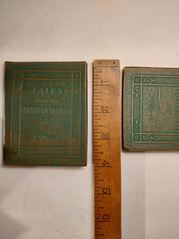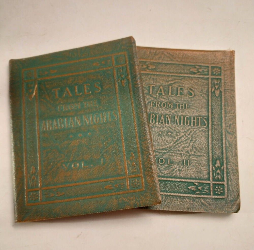 Tales From the Arabian Nights 1 & 2 Little Leather Library Miniature Books Set Book set measures approximately 3" x 4" and is in good used condition with some signs of age, use, and wear; age related toning to pages, please see photographs for condition details.