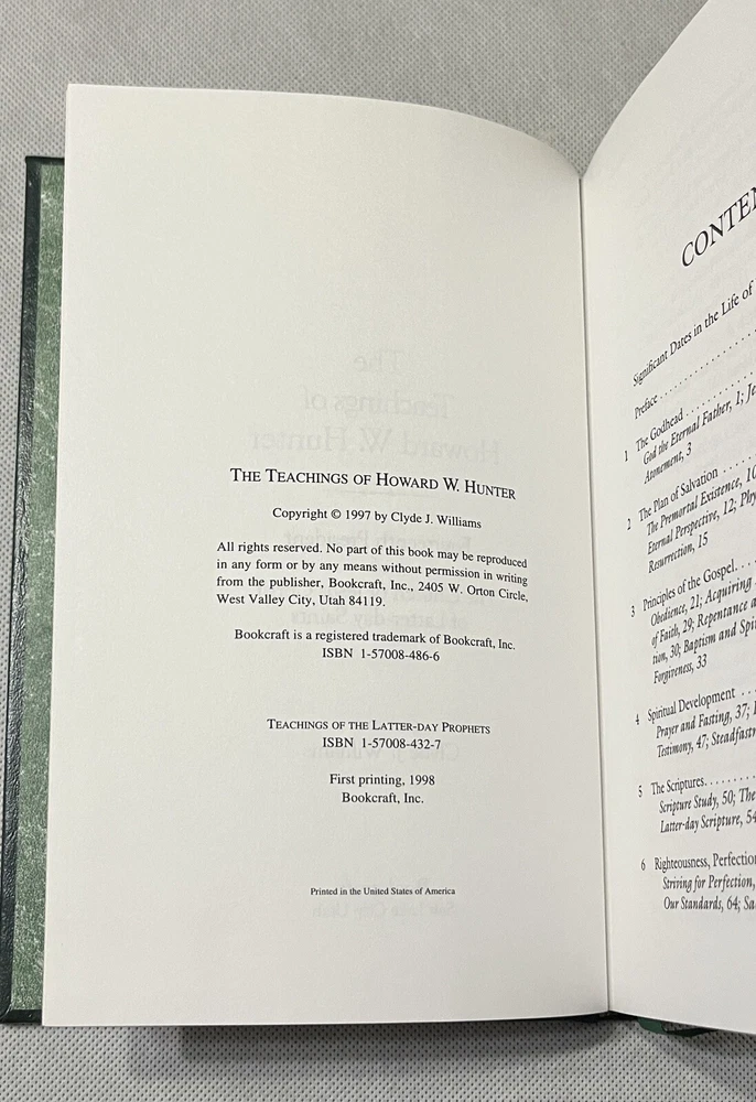 Teachings Of The Latter-Day Prophets: Vol 14 Howard w. Hunter Leather 1st Print Excellent condition. Please see all pics. Shipped within one day of payment. ******* This collector's edition of "Teachings of the Latter-Day Prophets" features a green leatherette cover, green sewn-in marker, special bound set copy, and gold gilded page edges. With a publication year of 1998, this hardcover book has 394 pages and is written in English by Heber Jeddy Grant and G. Homer Durham. The book is intended for young adults and adults, and covers topics of Christian life and general religion. It is not personalized, inscribed, or vintage, and does not feature an ex libris or personalized narrative. This book is a great addition to any collection and is published by Deseret Book Company in the United States.
