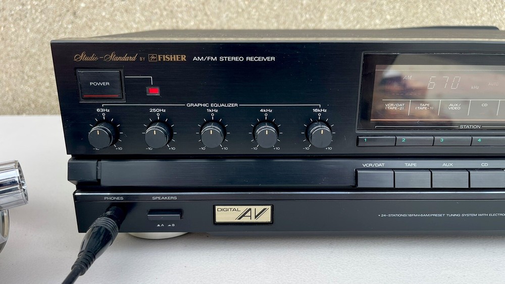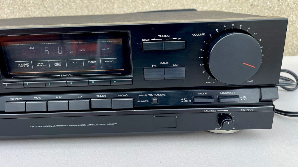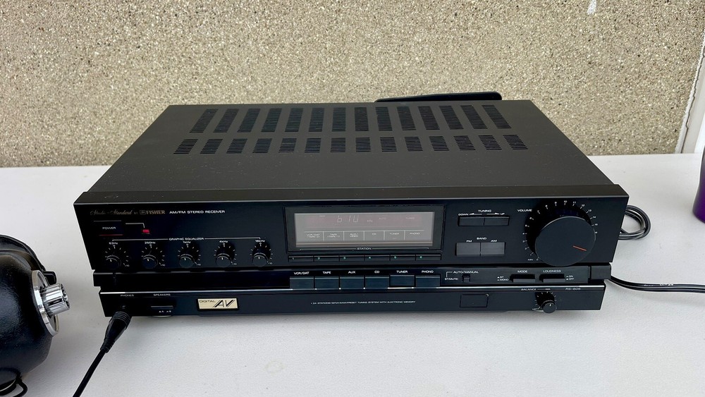 This vintage Fisher RS-605 stereo receiver has been thoroughly tested and is ready to bring high-quality sound to your home. With a power output of 100 watts, this receiver is sure to provide a powerful audio experience. It features both FM and AM modes, as well as audio inputs and outputs including a headphone jack and stereo RCA connections. The sleek black design complements any home audio setup. This receiver is in great working condition, and is certain to enhance your listening experience.