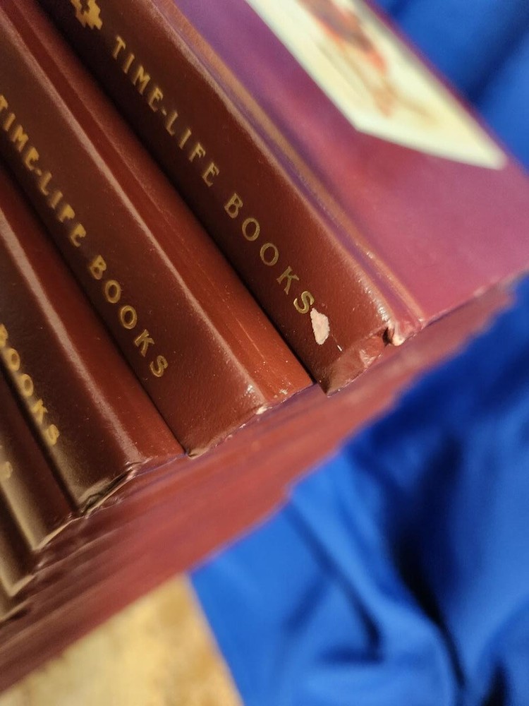 For sale are 20 books of the set of "The American Indians" series, published by Time-Life books from 1992 -1996. Books are in Very Good Condition, small nick in one and some damage to the corner to one other book, rest has no damage (see pictures) The title of the books are: - Algonquians of the East Coast - The Buffalo Hunters - Chroniclers of Indian Life - Cycles of Life - European Challenge - Hunters of the Northern Forest - Indians of the Western Range - Keepers of the Totem - The Mighty Chieftains - People of the Desert - People of the Ice and Snow - People of the Lakes - Realm of the Iroquois - The Reservations - The Spirit World - Tribes of the Southern Plains - Tribes of the Southern Woodlands - War for the Plains - The Way of the Warrior - Winds of Renewal Pictures are from the actual copy that is offered for sale.