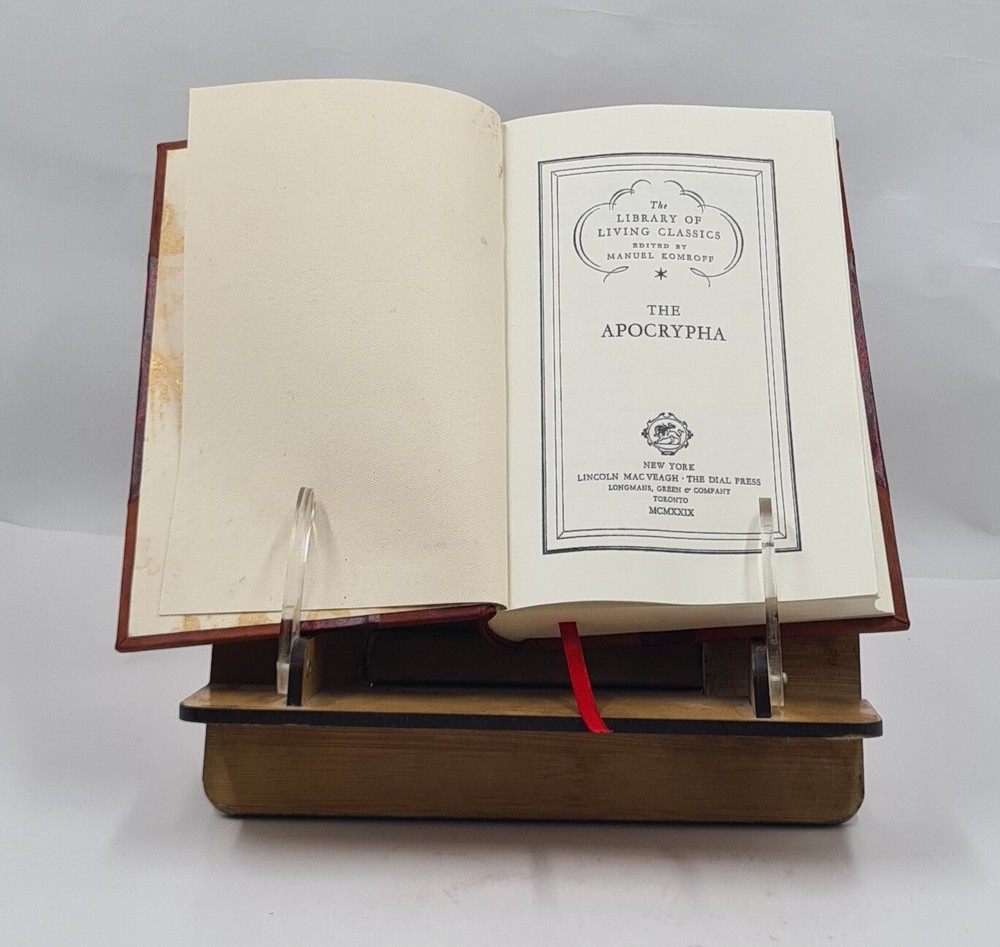About the Book: Complete Title: The Apocrypha 1929 [Leather Bound] Author: Bible, Ot, Apocrypha. Edition: Reprinted by Gyan Books in 2021 with the help of original edition published long back [1929] . Language: English No. Of Pages: 360 Binding: HALF LEATHER binding features a leather spine and corners with the remaining cover in Raxine or Marble Paper. CHOOSE ANY LEATHER COLOR OF YOUR CHOICE WITHOUT ANY EXTRA CHARGES JUST CLICK ON IMAGES FOR OPTIONAL COLORS AND INFORM US YOUR CHOICE THROUGH MAIL WITH COLOR CODE. Customization Options Available Upon Request We provide 'Extra customization*' on request with additional charges. Please note that customization charges are applied in addition to the listed item (Book) price. Customization Extra Charges Sample Image FULL LEATHER BOUND WITH GILDED EDGES (ANY COLOR) USD 35 MULTI-COLOR LABELS (Spine) USD 12 PERSONALIZED IMAGE EMBOSSING ON THE FRONT COVER USD 40 FOLIO EDITION (12x18.5 inches) BIGGER SIZE Six times of the given price Points to note before booking order: SPECIAL DISCOUNT FOR BULK ORDERS PLEASE CONTACT US. UNIQUE LEATHER-BOUND Edition on Spine and Corners along with Golden Leaf Printing on Round Spine. This book is: Printed in Black & White (If a color edition is available you may request it by mail for a nominal charge.) Sewed binding for longer life Printed on high quality Natural Shade Acid Free Paper Professionally processed without changing its content Genuine Leather is being used for Binding Handcrafted Golden Leaf Printing. Round Spine Handmade Marble paper use for end paper Raise bands Bookmark Ribbon As these are old books each page is processed manually to make them readable. But in case some pages are blur or missing or have black spots the same are re-printed as it is to keep the authenticity of the book. In case of multi volume sets please note that the above listing is for a single volume only. (To order multiple volumes please contact us separately). We request you to understand that these leather-bound books are work of art and hence require time to go through different process to be the masterpieces that they are. We usually take 20 business days as handling time to dispatch shipment. We consider special request for a special occasion. Craftsman based in India prepared this book and shipped from different stock locations around the Globe. PRODUCT DISCLAIMER: Please be aware that because leather is a natural material slight discoloration or change in texture may be visible. ABOUT US GYAN BOOKS INTRODUCING A REMARKABLE LEATHER-BOUND EDITION, METICULOUSLY CRAFTED BY THE ESTEEMED INSTITUTION: RARE BIBLIO A UNIQUE LEATHER-BOUND BOOK FOR ELITE READERS/COLLECTORS OF OLD RARE AND BESTSELLING BOOKS. An ORIGINAL LEATHER is being used for Binding this Book on SPINE AND CORNERS along with GOLDEN LEAF PRINTING {Half Leather}. We deal into reprinting of the masterpieces crafted by authors around the world. We are proud to say that we have a collection of over 25 million books and our collection includes books that are as old as 200 years and hence are considered as RARE BOOKS. We are pioneer in this field having experience of 40 years. We also undertake printing and Leather Binding jobs of other books. Thesis printing and Leather Binding is one of our important services. Many publishers and authors approach us for their books to bind in our unique leather binding format for their special customers. Our craftsmen are active in this job since generations. Restoration of old books is our expertise. We are known by our Customization options. We have many leather color options in our bucket. The whole process is done manually so that it gives you the same feeling of old book.