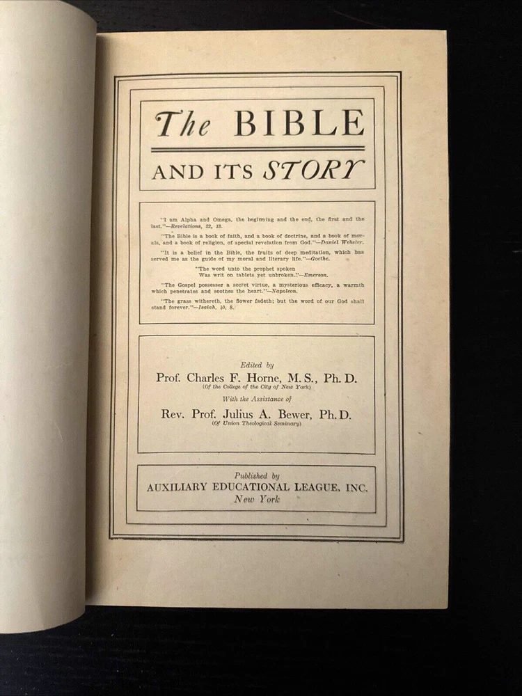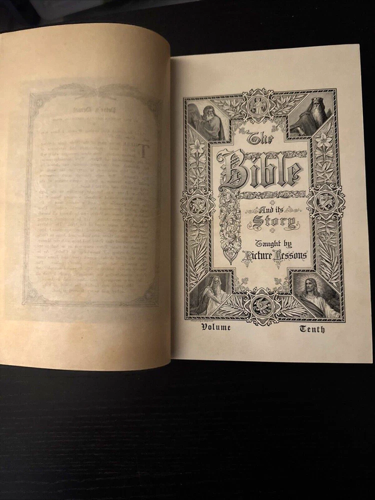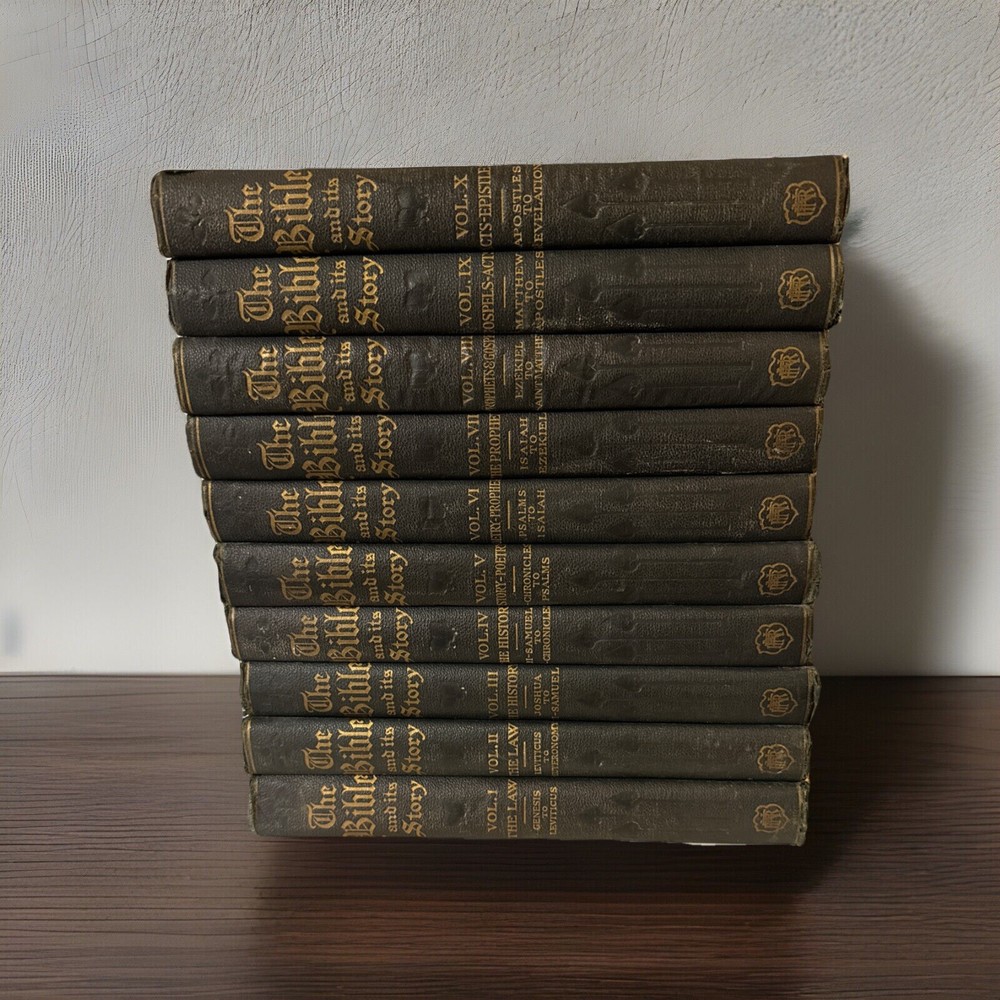 This is a 10-volume set of "The Bible and Its Story Taught by Picture Lessons" by Charles F. Horne originally published in 1910 in the United States by Ira R. Hiller. The books are leather-bound and illustrated, focusing on Christianity and Bibles. The set offers a unique teaching approach through visual aids, making it a valuable collection for those interested in religion and spirituality. The publication year is 1910, adding to its antique and collectible appeal. See photos for condition: Volume #1 book the bound has opened, Volume #!0 has writing on first page All books are in pretty good shape for the years. Ships out same day or next day. Comes from a very clean home. Please review photos before purchasing. Thank you for your interest and happy shopping!.