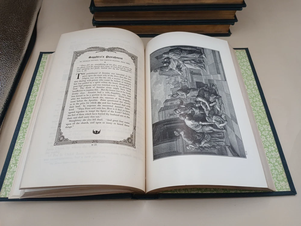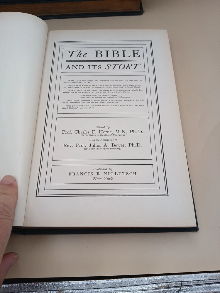 "The Bible and Its Story Taught by Picture Lessons" by Charles F. Horne is a 10-volume set published in 1910 by Ira R. Hiller. This illustrated book set offers a visual representation of biblical stories and teachings, making the Bible accessible and engaging for readers. With a leather binding and printed in English, this set is a valuable addition to any collection of religious literature, providing a unique perspective on Christianity and the Bible." Good condition