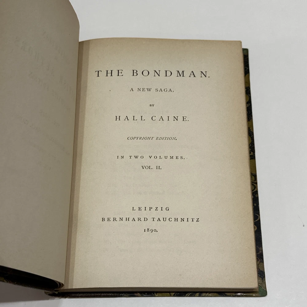 The Bondsman A New Saga By Hall Caine Copyright Ed. In Two Volumes 1890 Leipzig