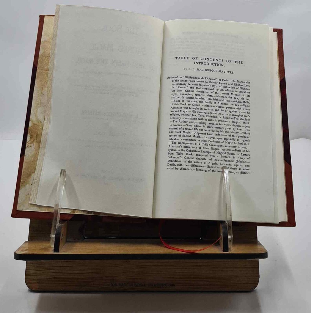 About the Book: Complete Title: The Book of the Sacred Magic of Abra-Melin the Mage 1898 [Leather Bound] Author: Mac Gregor-mathews Edition: Reprinted by Gyan Books in 2021 with the help of original edition published long back [1898] . Language: English No. Of Pages: 322 Binding: HALF LEATHER binding features a leather spine and corners with the remaining cover in Raxine or Marble Paper. CHOOSE ANY LEATHER COLOR OF YOUR CHOICE WITHOUT ANY EXTRA CHARGES JUST CLICK ON IMAGES FOR OPTIONAL COLORS AND INFORM US YOUR CHOICE THROUGH MAIL WITH COLOR CODE. Customization Options Available Upon Request We provide 'Extra customization*' on request with additional charges. Please note that customization charges are applied in addition to the listed item (Book) price. Customization Extra Charges Sample Image FULL LEATHER BOUND WITH GILDED EDGES (ANY COLOR) USD 35 MULTI-COLOR LABELS (Spine) USD 12 PERSONALIZED IMAGE EMBOSSING ON THE FRONT COVER USD 40 FOLIO EDITION (12x18.5 inches) BIGGER SIZE Six times of the given price Points to note before booking order: SPECIAL DISCOUNT FOR BULK ORDERS PLEASE CONTACT US. UNIQUE LEATHER-BOUND Edition on Spine and Corners along with Golden Leaf Printing on Round Spine. This book is: Printed in Black & White (If a color edition is available you may request it by mail for a nominal charge.) Sewed binding for longer life Printed on high quality Natural Shade Acid Free Paper Professionally processed without changing its content Genuine Leather is being used for Binding Handcrafted Golden Leaf Printing. Round Spine Handmade Marble paper use for end paper Raise bands Bookmark Ribbon As these are old books each page is processed manually to make them readable. But in case some pages are blur or missing or have black spots the same are re-printed as it is to keep the authenticity of the book. In case of multi volume sets please note that the above listing is for a single volume only. (To order multiple volumes please contact us separately). We request you to understand that these leather-bound books are work of art and hence require time to go through different process to be the masterpieces that they are. We usually take 20 business days as handling time to dispatch shipment. We consider special request for a special occasion. Craftsman based in India prepared this book and shipped from different stock locations around the Globe. PRODUCT DISCLAIMER: Please be aware that because leather is a natural material slight discoloration or change in texture may be visible. ABOUT US GYAN BOOKS INTRODUCING A REMARKABLE LEATHER-BOUND EDITION, METICULOUSLY CRAFTED BY THE ESTEEMED INSTITUTION: RARE BIBLIO A UNIQUE LEATHER-BOUND BOOK FOR ELITE READERS/COLLECTORS OF OLD RARE AND BESTSELLING BOOKS. An ORIGINAL LEATHER is being used for Binding this Book on SPINE AND CORNERS along with GOLDEN LEAF PRINTING {Half Leather}. We deal into reprinting of the masterpieces crafted by authors around the world. We are proud to say that we have a collection of over 25 million books and our collection includes books that are as old as 200 years and hence are considered as RARE BOOKS. We are pioneer in this field having experience of 40 years. We also undertake printing and Leather Binding jobs of other books. Thesis printing and Leather Binding is one of our important services. Many publishers and authors approach us for their books to bind in our unique leather binding format for their special customers. Our craftsmen are active in this job since generations. Restoration of old books is our expertise. We are known by our Customization options. We have many leather color options in our bucket. The whole process is done manually so that it gives you the same feeling of old book.