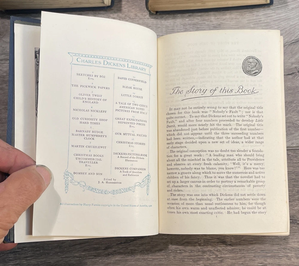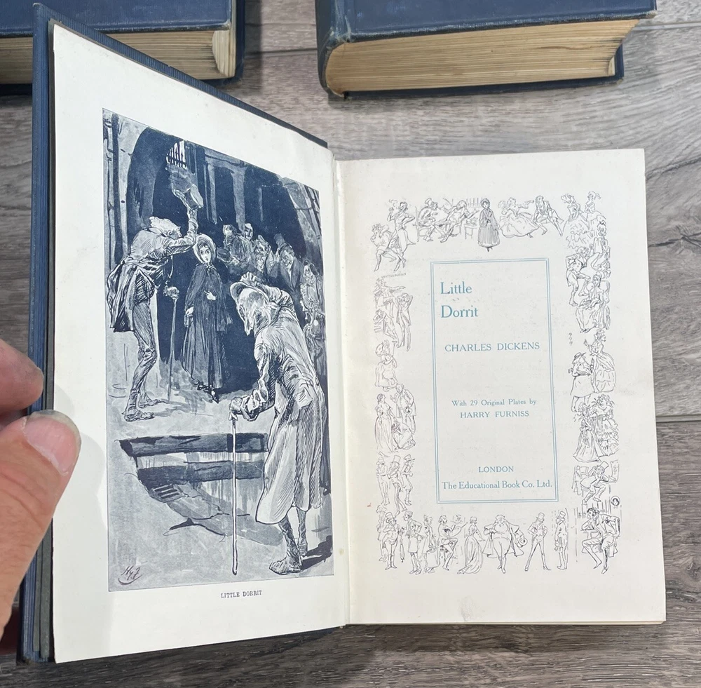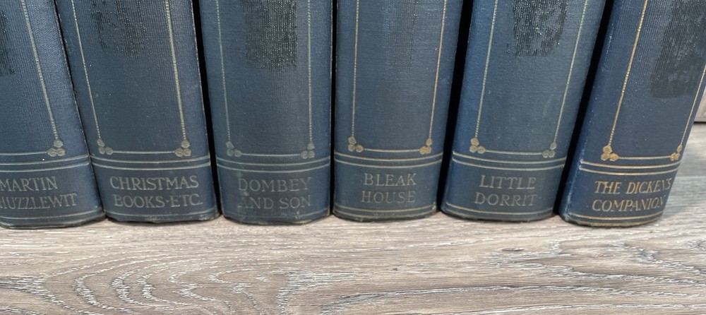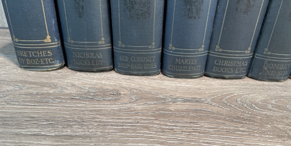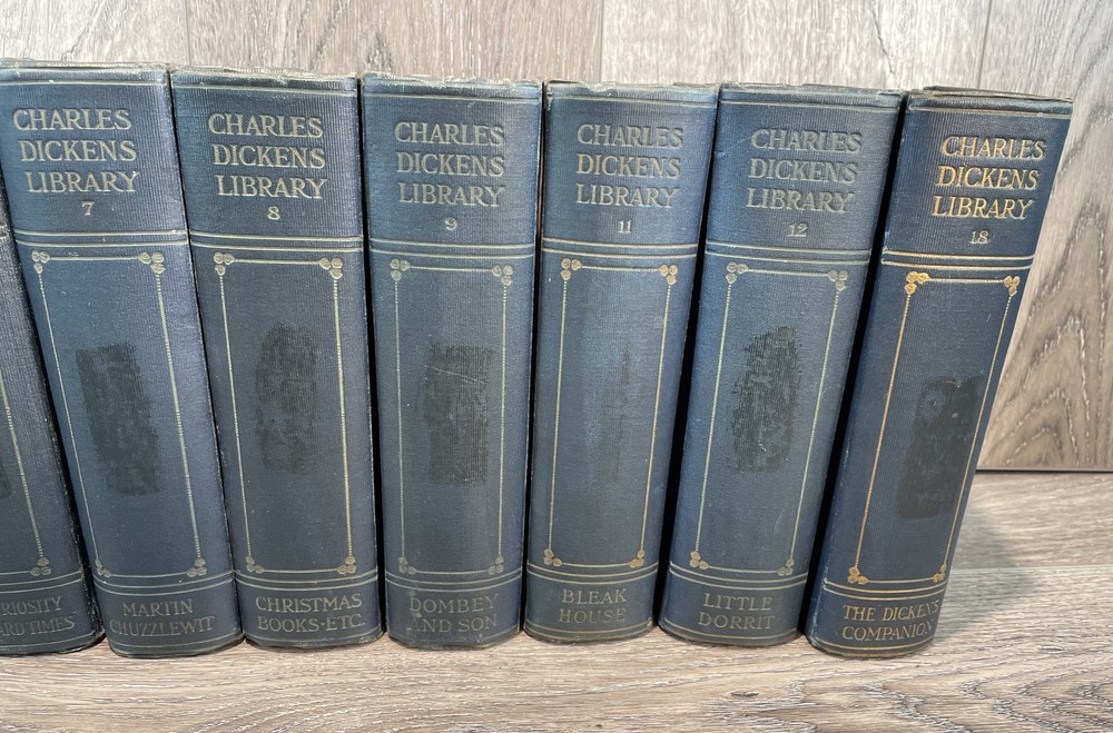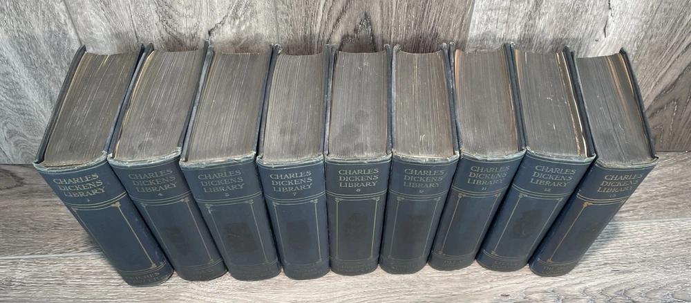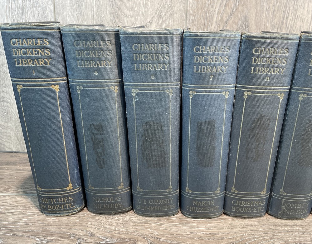 The Charles Dickens Library 9 Volume Set 1910 Educational Book Color Plates Acceptable to good condition Includes: Volume one sketches by Boz Volume four Nicolas Nickelby. Volume five curiosity shop Volume eight Christmas books Volume 9 Dombey and Son Volume 11 bleak house Volume Seven Martin Chuzzlewit Volume 18 Dickens companion Volume 12 little Dorrit 9 volumes of a complete set of 18 Thanks. Watch for Sales Events!