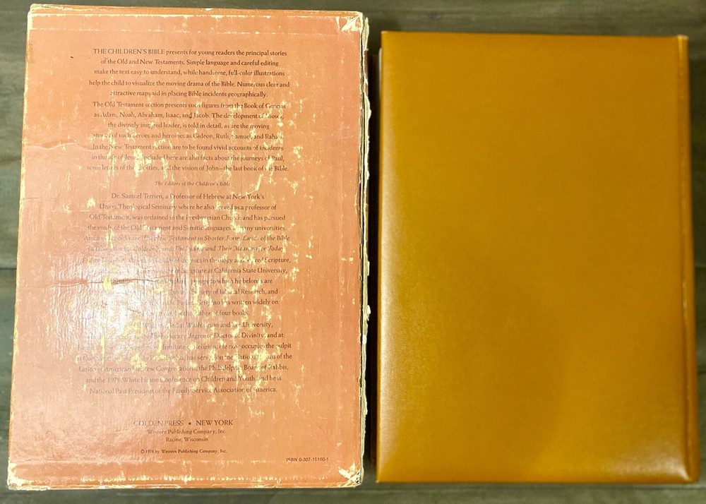 Beautiful!!! 1965 The Children's Bible / Golden Press old and new testament Deluxe Edition. Please see pictures for wear and tear, has written dedication from 1977 and stamps from a church....
